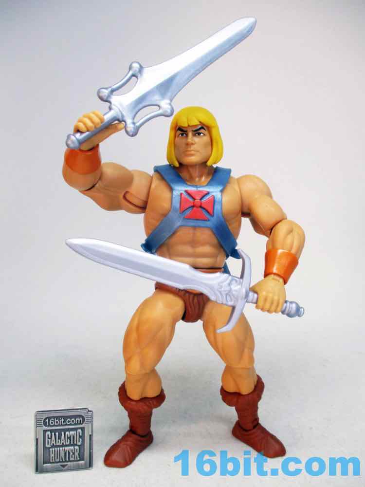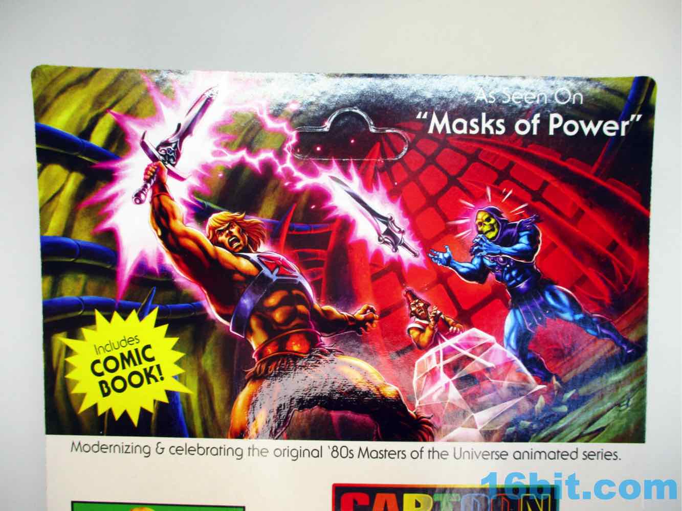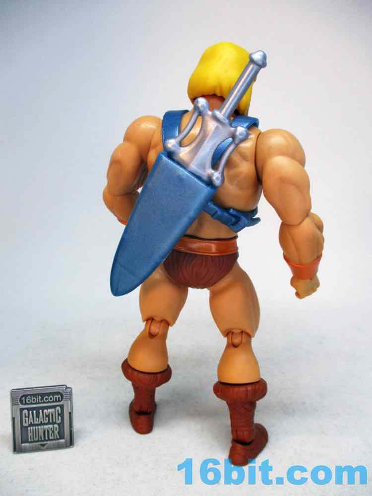 Compared to the trove of goodies with Skeletor, He-Man's armaments are pretty light. You get a Sword of Power, which is an incredibly tight fit in his removable sheath. He can hold it just fine, but if you cram it in the pocket I found it to be gripped way too tightly. The sheath comes off so you can put it in a drawer if you don't like it, which is a nice option to have. It also includes the Sword of the Ancients from the "Masks of Power" episode and a few mini-comics, complete with a nice creepy monster face on the blade just above the hilt. I would have liked a shield or axe, but that's how they get you to buy the toy version, I suppose. New accessories are always welcome, mostly because by now you probably have some snake men or other characters that were a little short on weaponry.