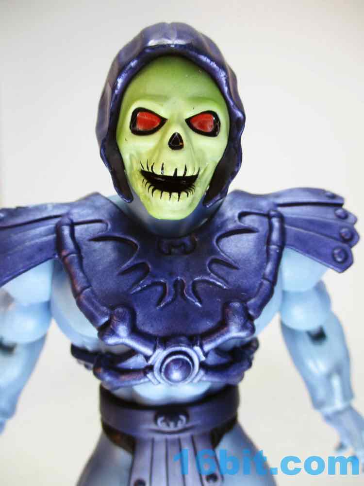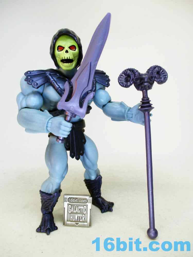 Skeletor is a grab bag of parts from the two releases of the 2020 figure, with new deco. It uses the 2020 head with the reissue sword (not a connectable one), desaturates the colors, adds a metallic tint to the plastic, and covers the thing with a light black wash. You can see some black paint rubbed in his boots. His right hand can grip either accessory nicely, and I love how well they painted the head. If you need a Skeletor (or another one), I bet you'll like it as it looks just a bit better than the other releases.