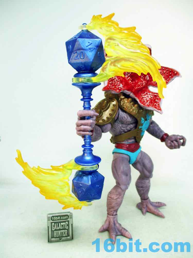 This time, the figure has a vaguely bronze tint to his armor, with a pale ashen purple skin. There's a black paint wash on it, which brings out some of the detail in a fairly subtle way. His hands do a great job gripping the accessories, although the double-D20 with energy blast effects weighs a lot and will bring the shoulders down. Articulation is more or less par for the course, but the foot construction is new. The new plant feet don't have rocker ankles, but they do bend and swivel. Based on the construction I assume he'll sag and flop over in warm months, so you might want him to lean against something to avoid jumping off your shelves.