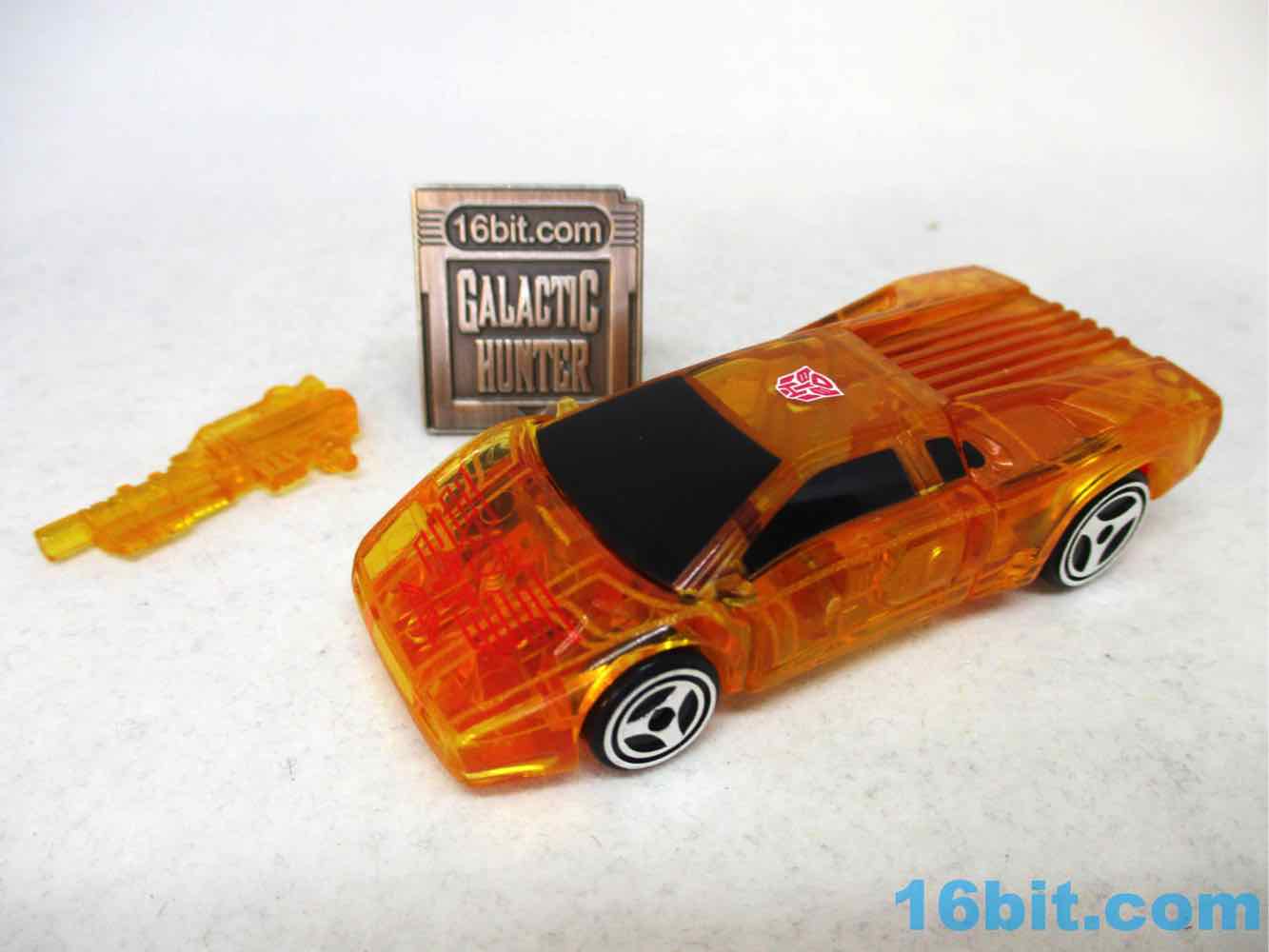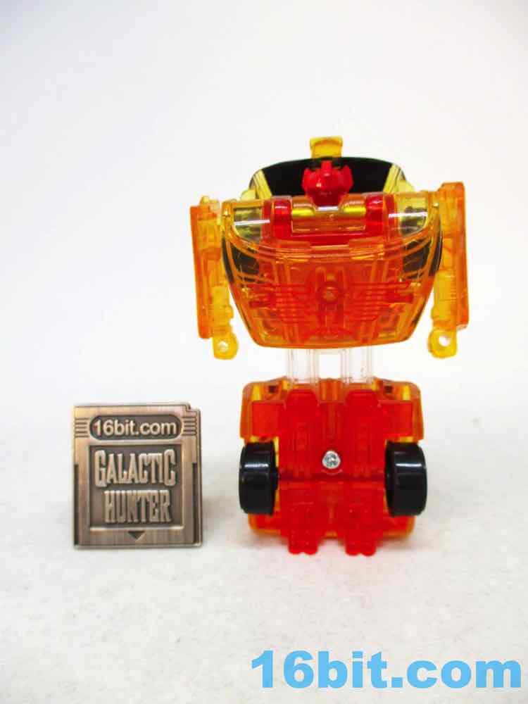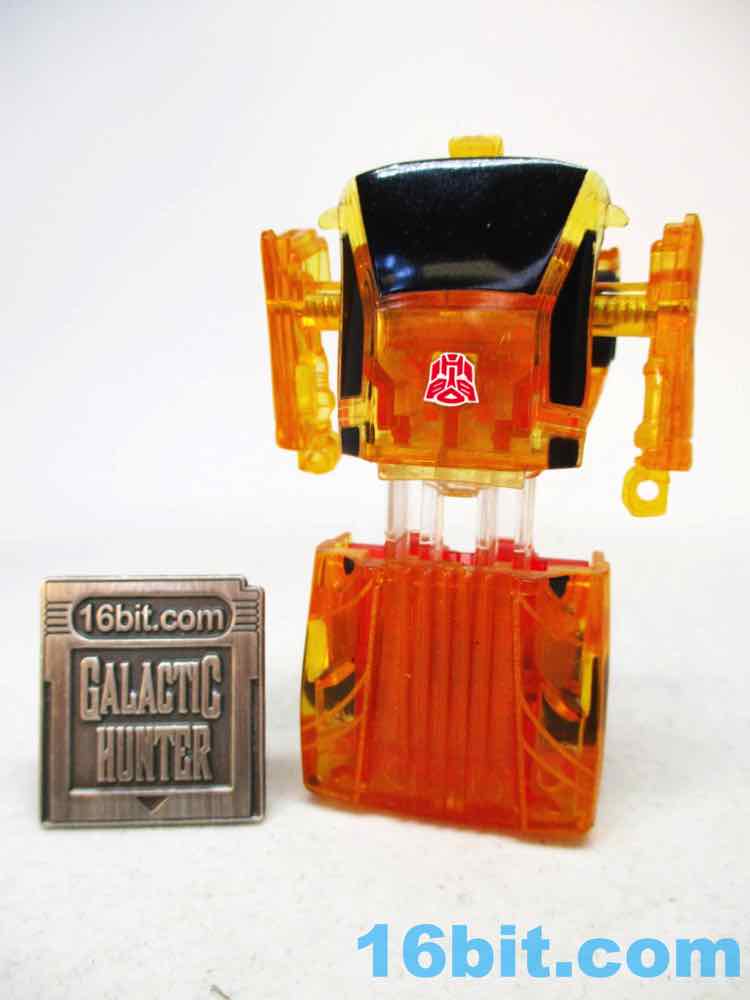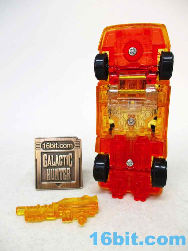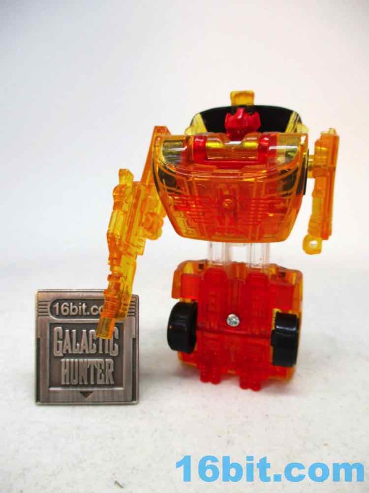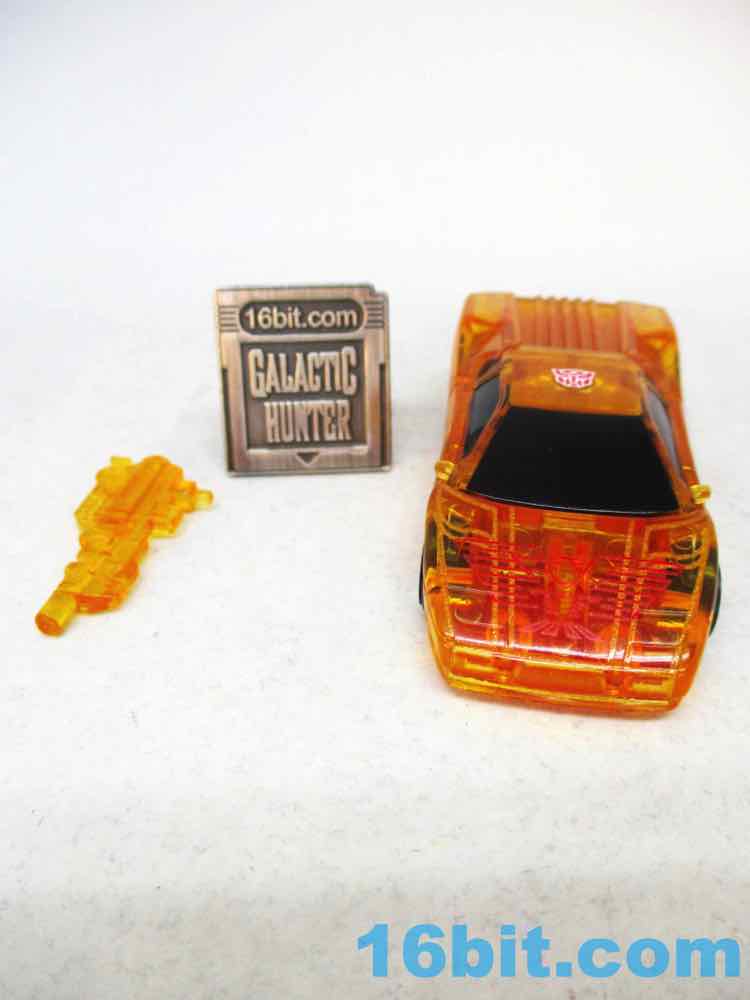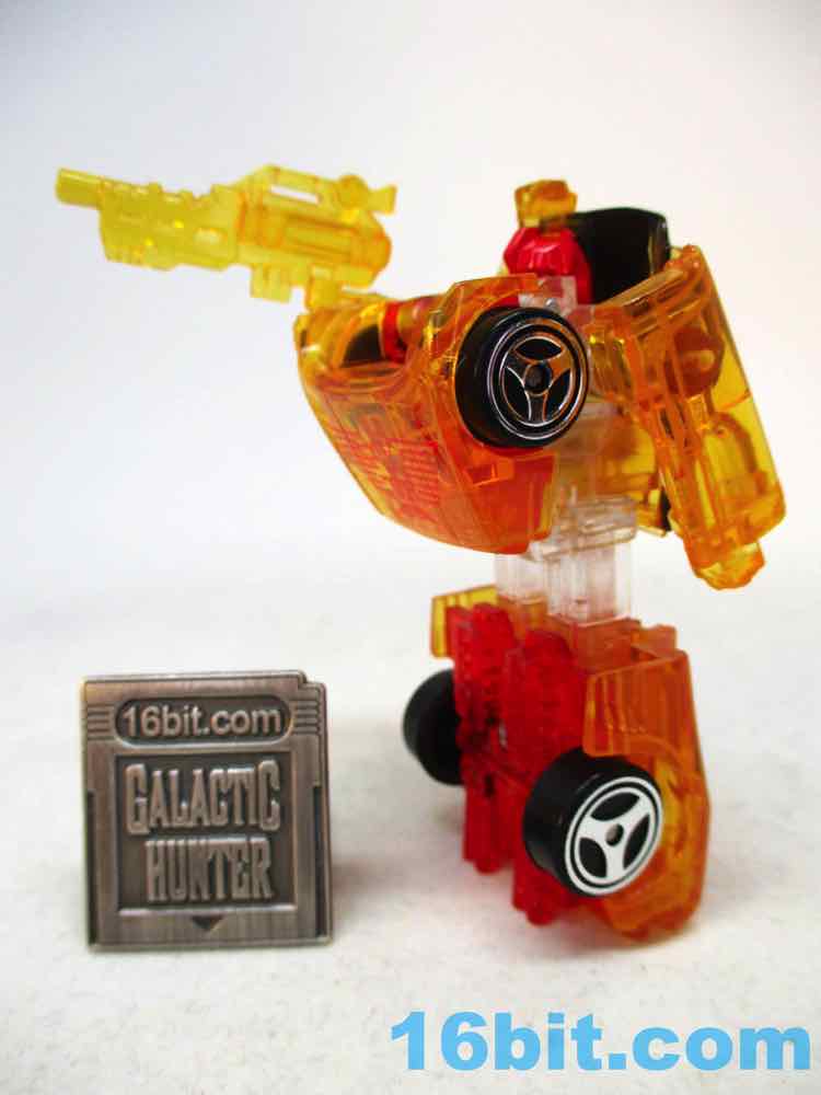 Item No.: Asst. 26548 No. 26554 Manufacturer:Hasbro Includes:Clear orange blaster Action Feature:Transforms from robot to car, rolls Retail:$3.99 Availability: 2003 Other: There are other clear versions, too
