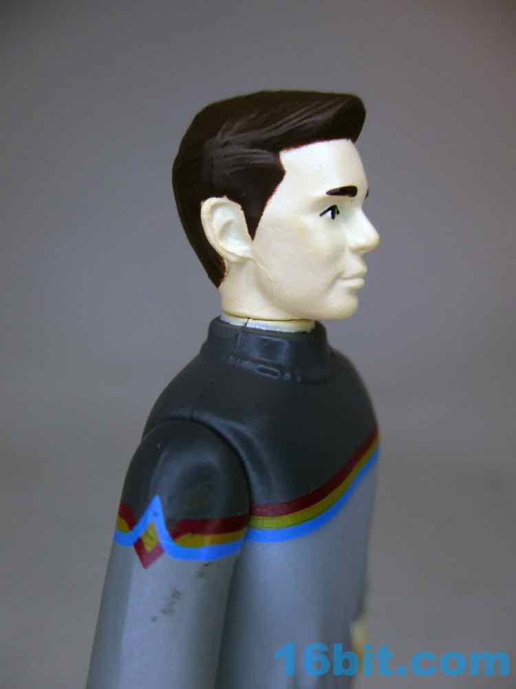 The outfit seems more or less true to the show, with the command/support/sciences stripes on his shirt plus a toned-down neck that makes the figure look a little bit less goofy than the costume on the show. While I could make pale nerd jokes all day, Wil Wheaton wasn't that pale in the photos and his face had more color on the show - it's a bit of a downer that he is extraordinarily white. His mom only has a slight hint of additional color in her skin.