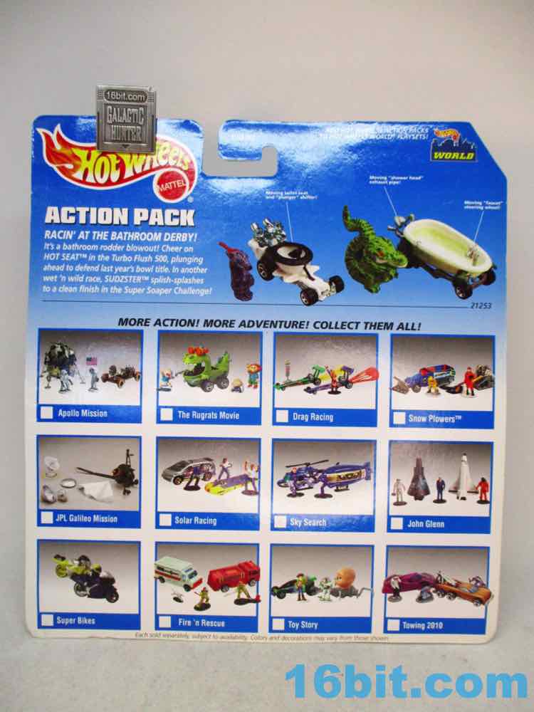 Item No.: Asst. ??? No. 21253 Manufacturer:Mattel Includes:2 cars with removable rat and alligator figures Action Feature:Opening toilet seat, articulated plunger shifter, articulated spigot and fixture Retail:$4.79 Availability: ca. 1999 Other: One of the most expensive Action Packs at present