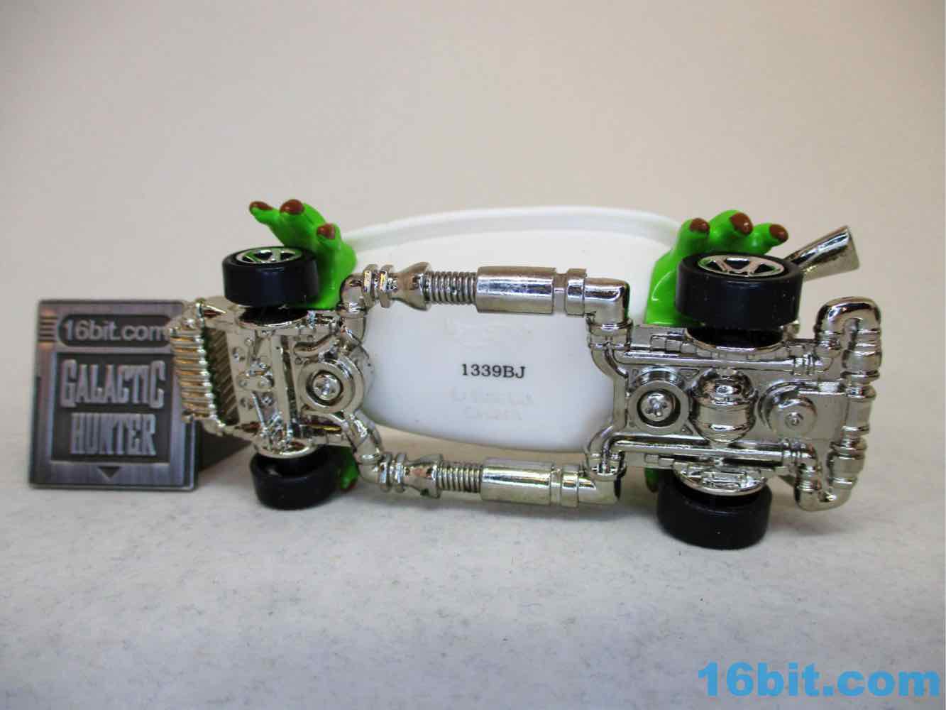 The Hot Seat was released as an individual car as well, and is pretty much the same for its first releases. It's a cracked toilet with a plunger, and while this one has a red Hot Wheels logo, it was originally black. If it weren't for the figure, it's the very definition of "just different enough to make you mad." It's got a massive engine on the back, which "cracked" the tank to get it in there. The seat is patched together with sculpted elements, and it has plenty of pipes underneath. The figure is more or less loose, he can fit in the bowl and hold the plunger but will fall out if you shake it.
