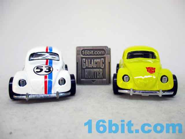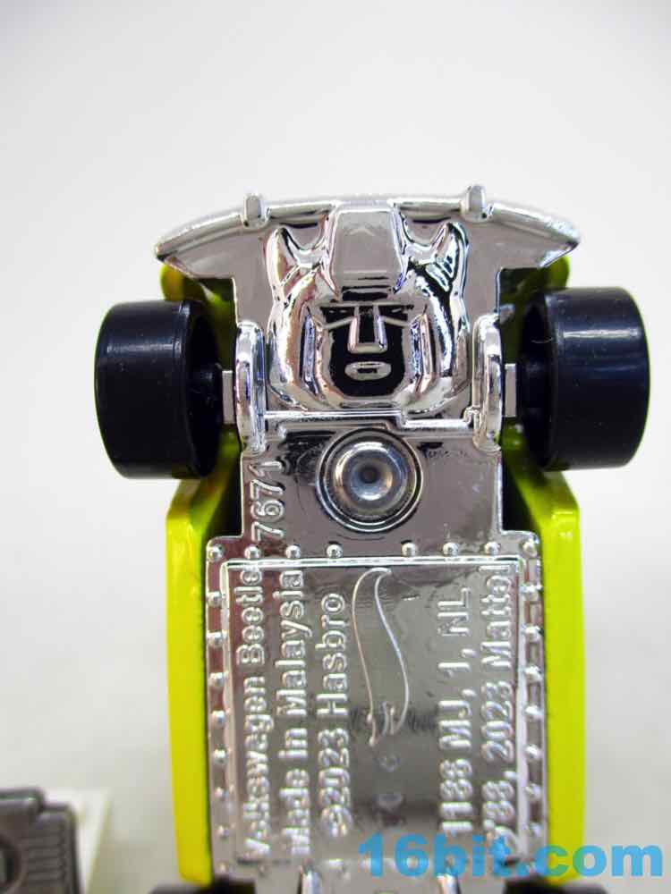 What makes this car particularly neat is that it's a partial new toy - the top metal yellow part is pretty much the same Volkswagen Beetle they've been selling for years. It has been retooled, but the version I had previously was Herbie the Love Bug and it still had a metal base back then. Bumblebee has a plastic base... but at least it had something cool added to it.