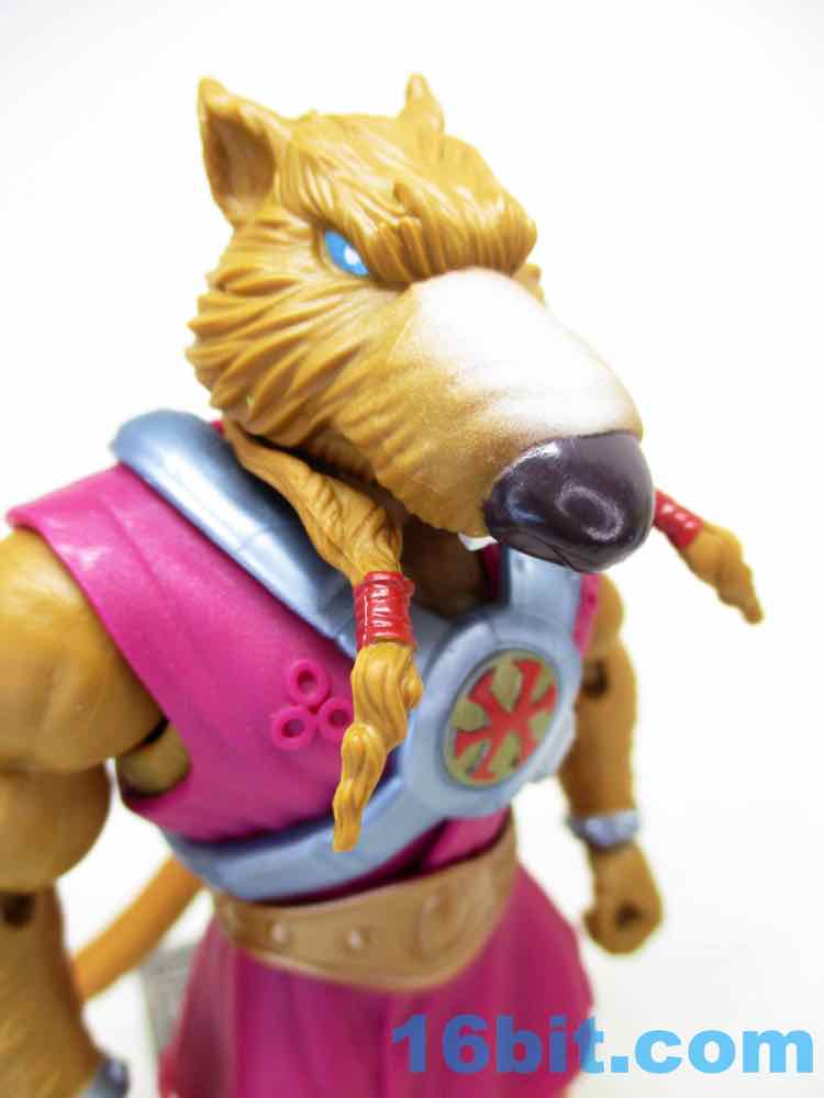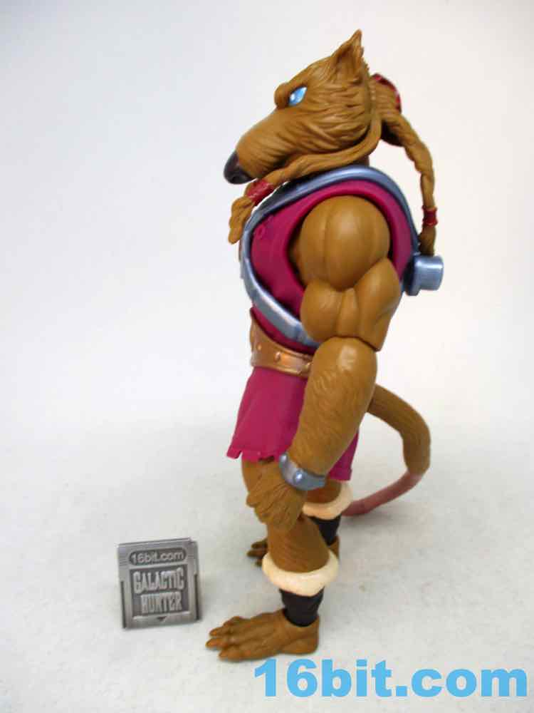 Splinter draws a lot of his detail from the old figure, with big buck teeth and whited-out eyes. The large snout resembles what you remember from the toys and cartoons back in the 1980s, with a nice alternate hand so he can grip a weapon or grip the top of his walking stick. On one hand, awesome, on the other, now you have another piece to not lose.