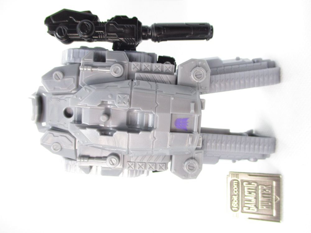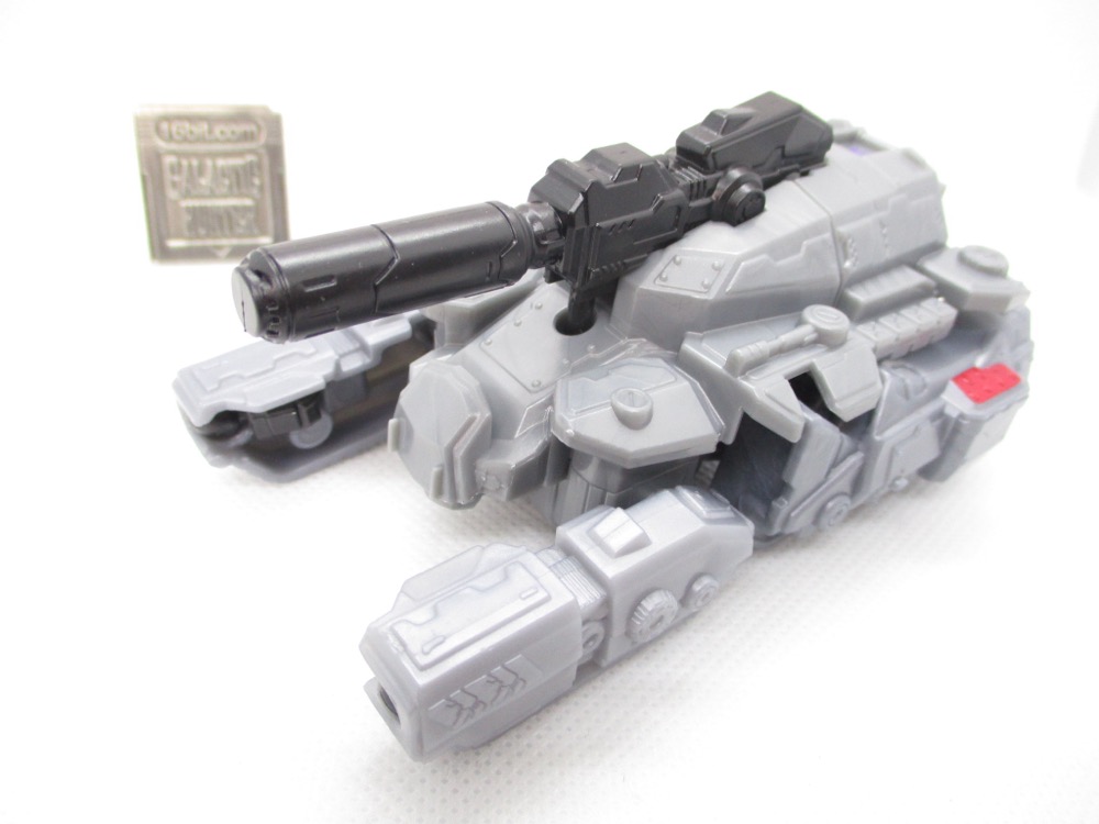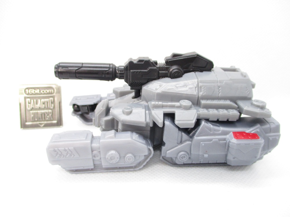 The tank has no wheels, but sports some unpainted sculpted treads and generally looks like the sort of thing that you might see on Cybertron. There amount of deco is minimal - a Decepticon logo and a couple of red splotches - so you'll be happy the fusion cannon is black just because it adds some visual flair to an otherwise vary gray toy. It doesn't do much, but it looks neat. Most vehicles aren't exactly packed with action, so it's arguably no better or no worse than similar items at other price points.