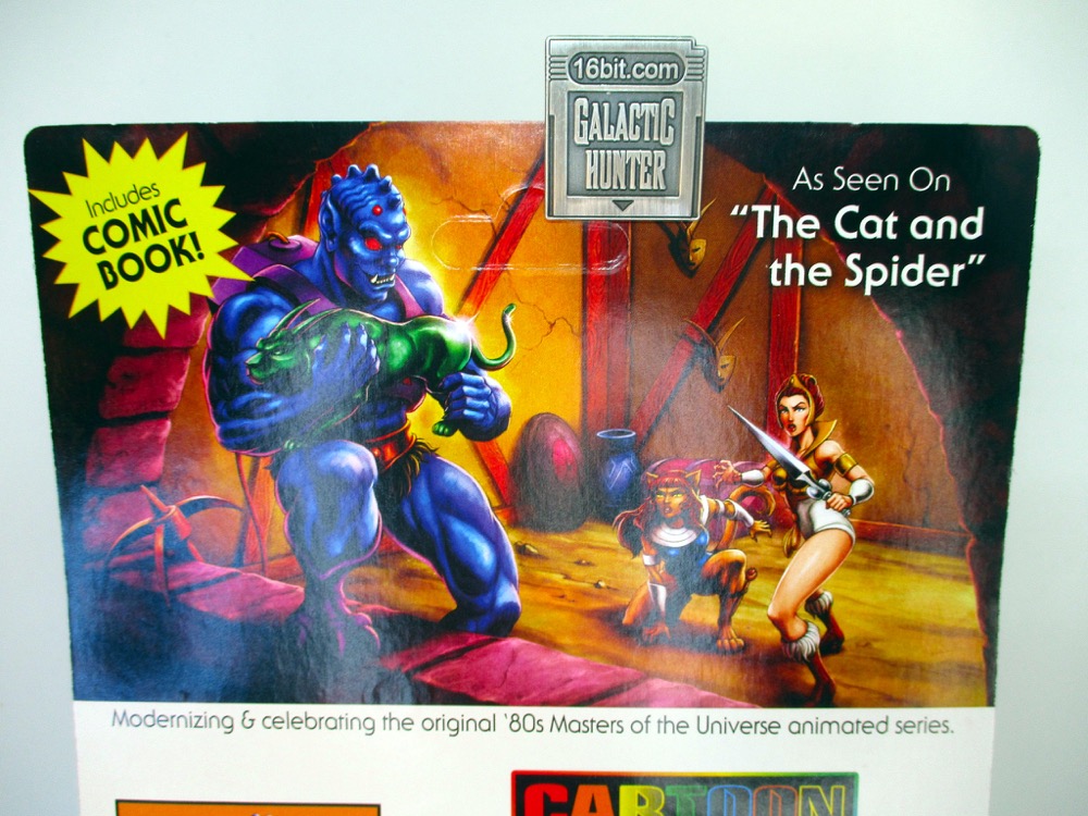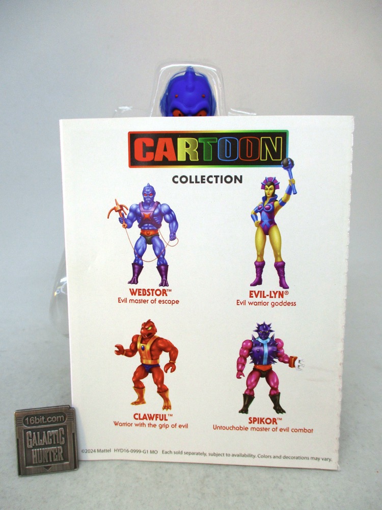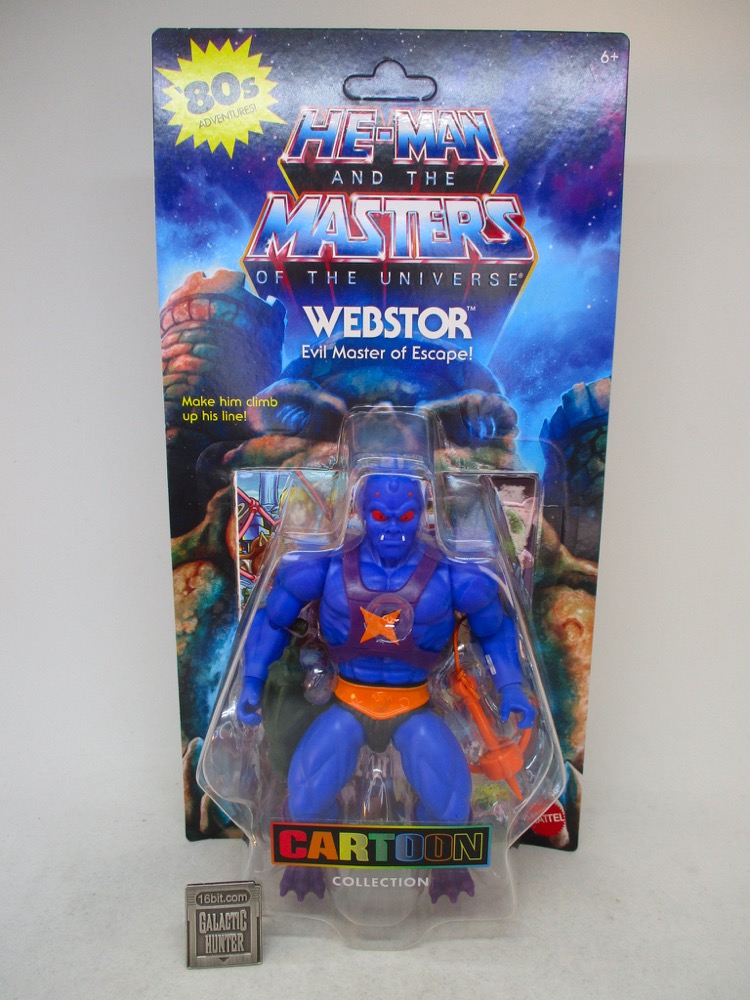 The great thing about the He-Man and the Masters of the Universe Cartoon Collection is how it can reconcile the cartoon redesigns from the action figures. So many figures looked significantly different in color or costume, that it makes sense Mattel would want to sell you two flavors of them. But Webstor looks very much the same - the Origins toy figure is pretty much the same colors, with slightly different armor and more eyes. Toy Webstor has a nice orange blaster and a blue grappling hook, while Cartoon Webstor has a statue of the cat-like Grimalkin and an orange hook. Do you need both? Probably not.