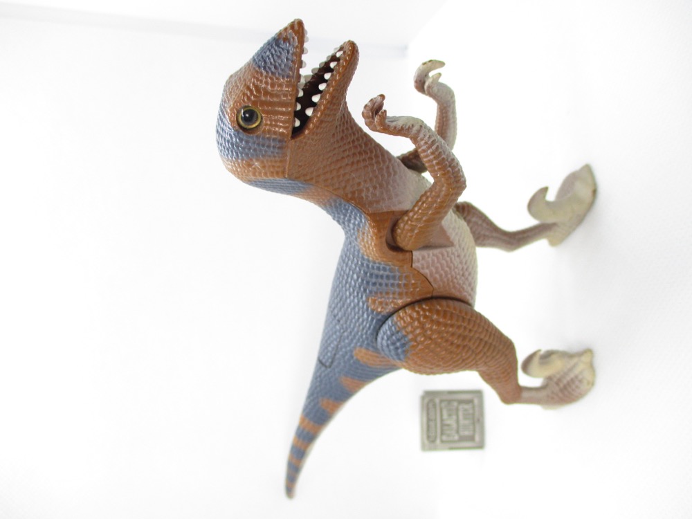 I don't know for sure what this is - I found this Deinonychus at a Goodwill before COVID in a sack with two other partially incomplete Dino-Riders toys. This little fellow had a broken and incomplete bit of his gear. The kicking mechanism sort of works - pushing the button doesn't do anything, but if you move the legs you may see the lever move. Clearly, it's a survivor - and a reminder that we're all temporary stewards of these toys. This one made some kid happy at some point, wound up in a closet, and despite Dino-Riders being sought-after collectibles, he just got dumped in a bag at a thrift store in Phoenix at some point in the 2010s. Good toy finds are still out there, for those who are blessed with the tenacity or dumb luck to find them.