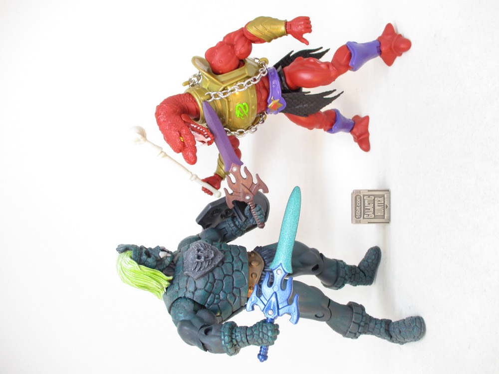 When I saw the concept for the figure, I thought "that's interesting" and went about my business. Seeing the final product, it's remarkable how much they incorporated from the playset. The purple mountain is reflected in his greaves and belt, and his gold armor with chains are adapted from elements on the actual tower. The long neck and open mouth are as well, amping up flourishes from the playset like upturned shoulders and the whole body thing. Making a new figure that feels like it's from a 40-year-old toy line is tricky, but Mattel nailed it with this one.