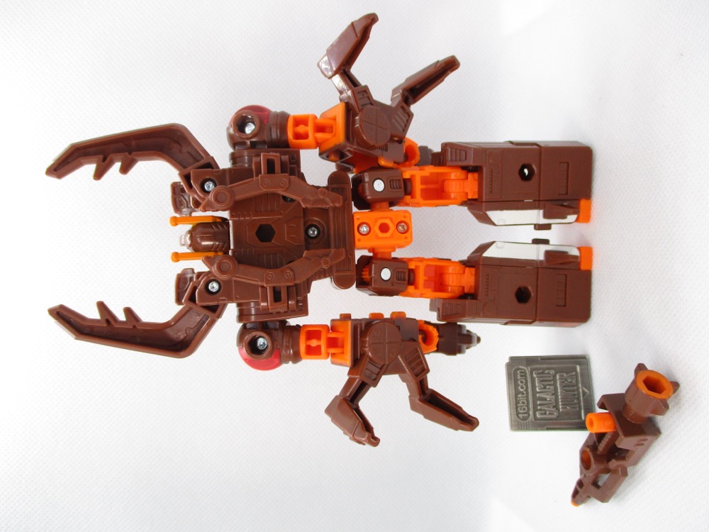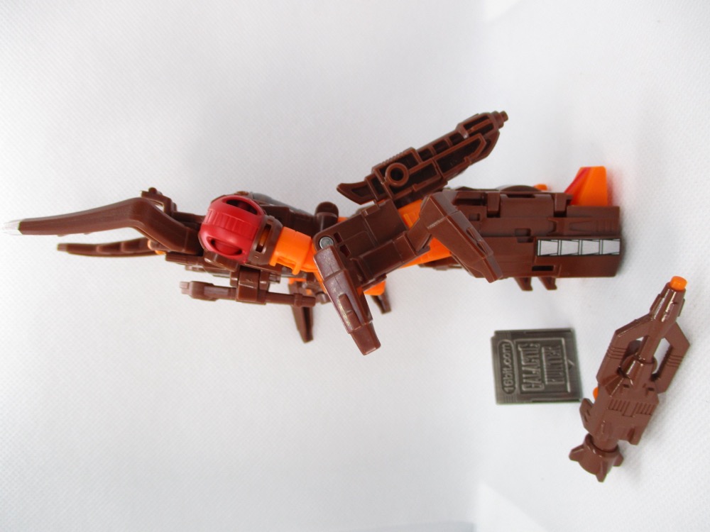 Transformation is pretty easy, with lots of tabs and slots fitting in logical ways. It's not a pain in the neck, and you get little bug legs and a new head when you're done. It's a short review, but it's a set, and it's good, so I don't have a lot to whine about. If someone makes a sword I could use it, but I could also steal one from Ransack.