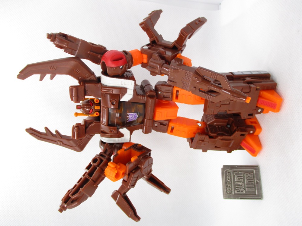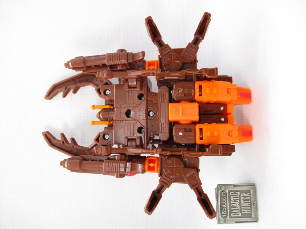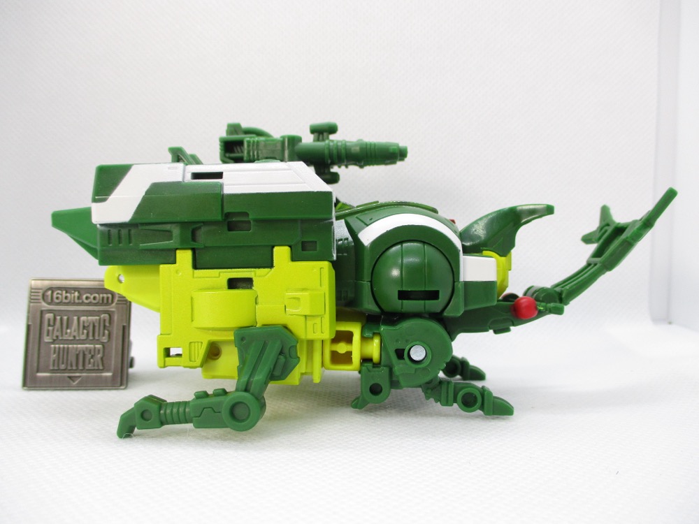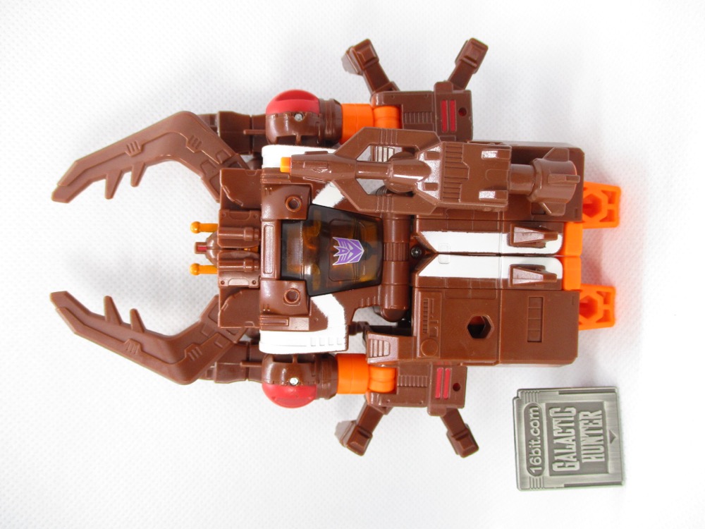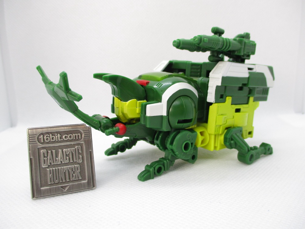 Transformation is pretty simple, and the bug mode looks a good bit like the original toy. It's not identical, but Hasbro did a nice job with those add-on leg parts and making the shoulders into his eyes. The articulated mandibles are excellent, and I love a good mechanized animal toy. It's great to pick up something and have my reaction to it be something like "hey, this isn't frustrating at all!"