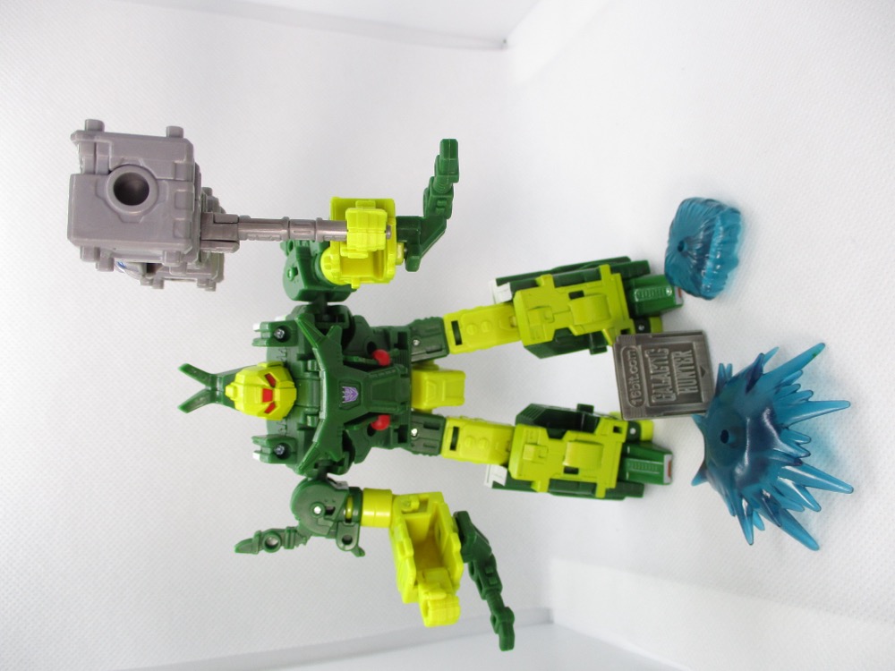 Hasbro has been doing some clever exclusives for Amazon with extensive retooling. The Chop Shop, Barrage, and Malleus Minotaurus set gives you a Solus Prime redeco of Smashdown [FOTD #2,153] along with some clever bug retools. Chop Shop is a retool of Shrapnel, and Barrage is a clever variant transformation (and retool) of Bombshell. These characters are nobodies to most fans, unless you memorized toy catalogs (or had the originals) you probably don't necessarily have a reason to want the Deluxe Decepticons group. And now we've got 3 out of the 4 in the modern line, so we're just waiting for Venom.