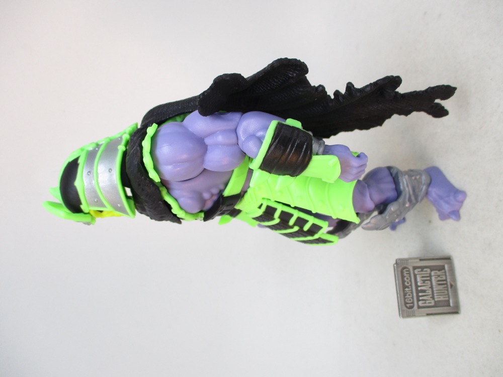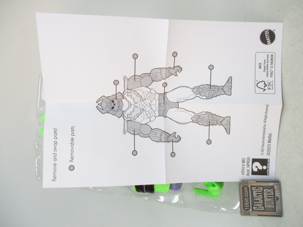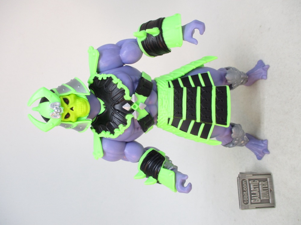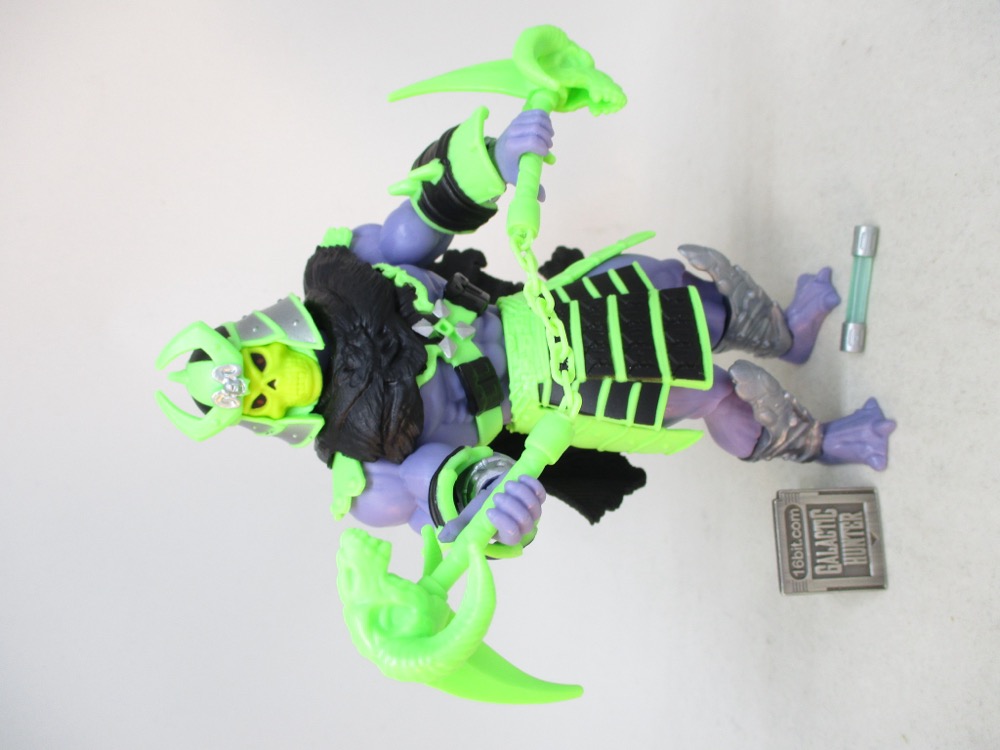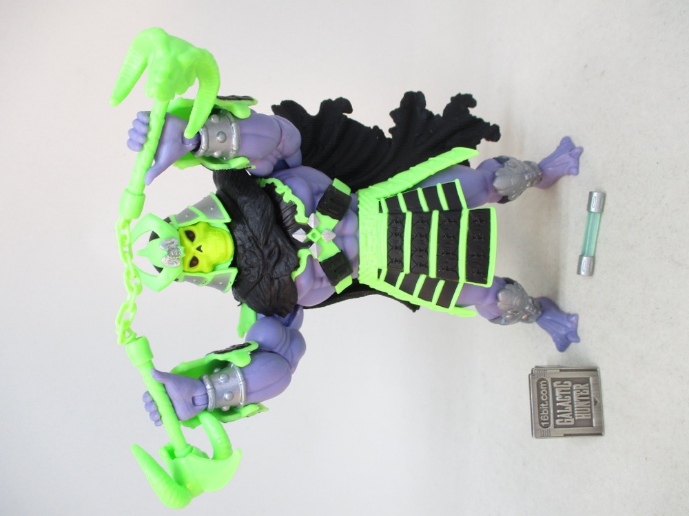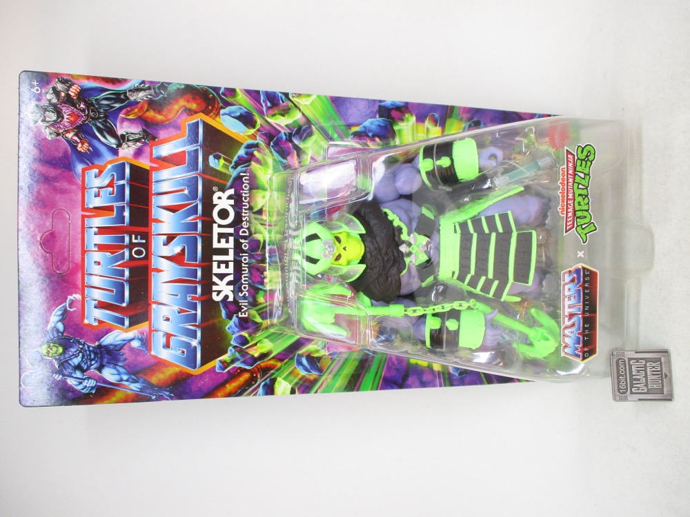 Mattel Masters of the Universe Origins x Teenage Mutant Ninja Turtles Turtles of Grayskull Skeletor Action FigureIf you're dealing with toys from Eternia, if there's a He-Man there's going to be a Skeletor. Turtles of Grayskull waited for wave four to do the heavy-hitters, which is probably a good idea - these guys will sell. He-Man is in some roughed-up drifter disguise, whereas Skeletor seemed to have studied the blade and said "no, I want to borrow from Shredder's tailor." The Samurai-inspired outfit looks like something from the late 1980s or early 1990s, and on a simpler figure seems like something we could have had as kids. As a super-articulated figure, though, it's a bit fancier - but it's worth noting just because it looks like the green trim can glow in the dark doesn't mean that it can.