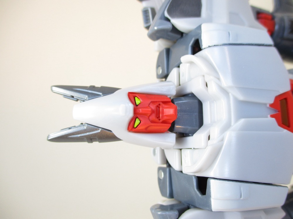 This toy takes Cyclonus and retools him slightly to look more like the Cyclonus character - heck, he would have been good in Cyclonus colors, but we've already got two of those. In Ferak colors, it's worth noting the bright red face is painted and is worth looking at closely before marching to the register in case some doofus dinged it thanks to the open-box packaging. The gray color is mostly uniform, and you have to reconfigure the wings and knees (if you like) once you open the box to match the intended configuration. You can also keep him short to make him look different from Cyclonus, and that won't distract you from the new wings, chest, and head.