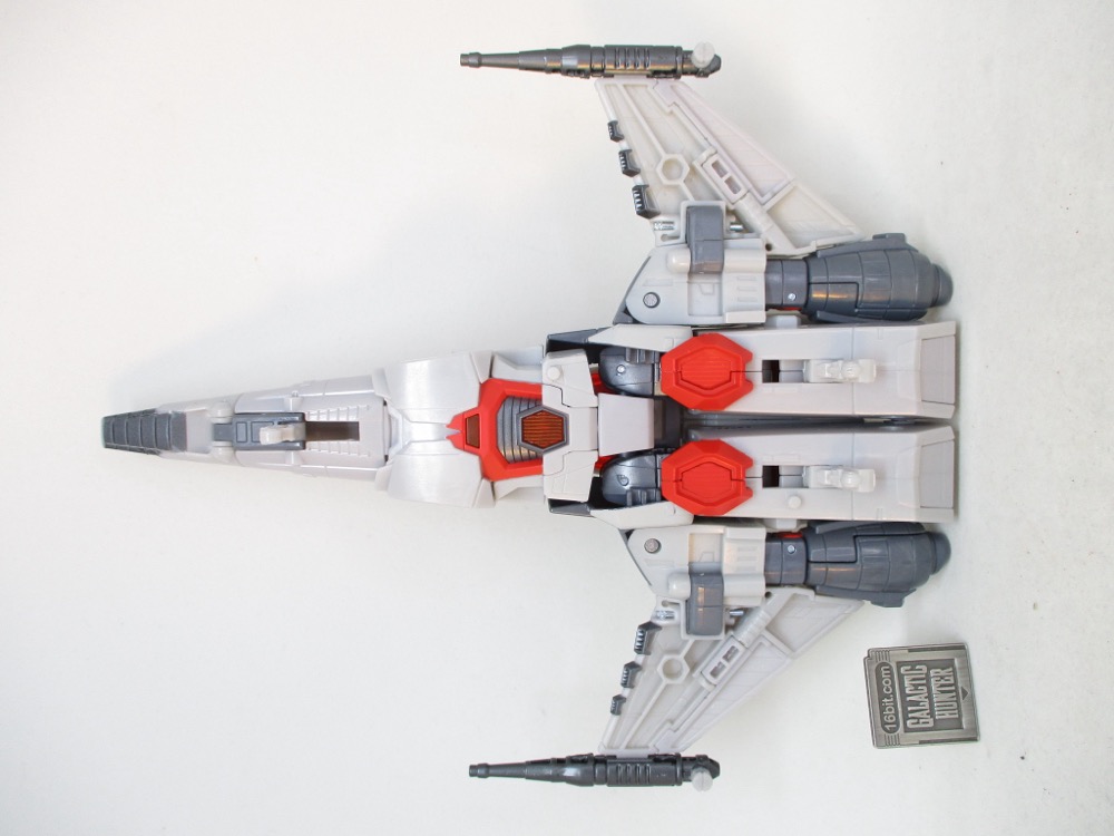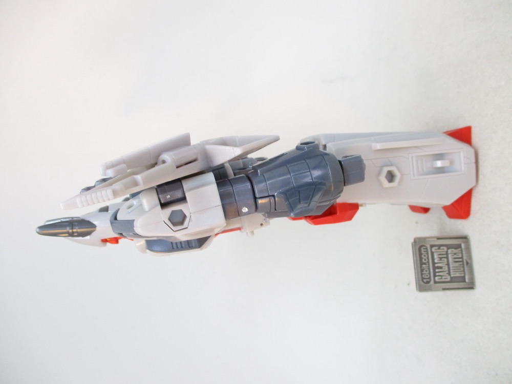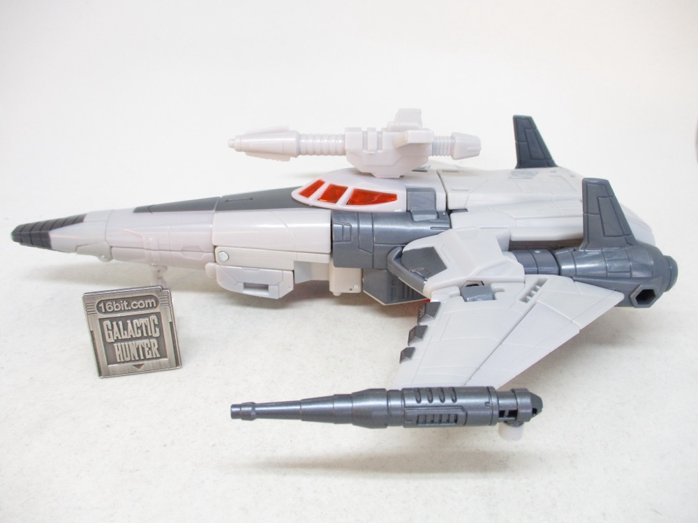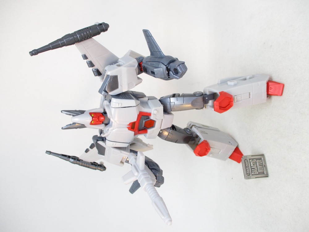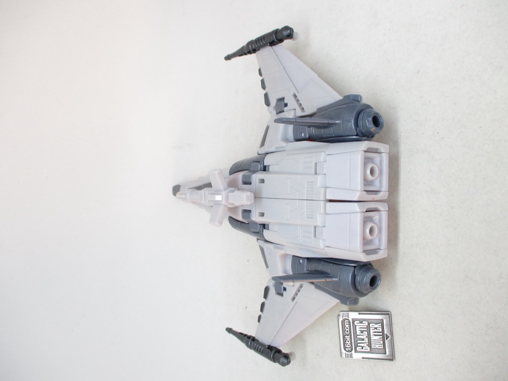 The ship mode is more or less what you expect - it's basically a retooled Cyclonus with some big exceptions. The wings are retooled and have little tabs so you can plug in some extra cannons, and the nosecone is redesigned. It's good, with retractable landing gear and a pretty sturdy construction with a port on top for a blaster. It doesn't do a lot, but those few moving parts put it ahead of a lot of other alt modes. There are no visible markings in ship mode - a shame, I would have loved some sort of skull and crossbones or other markings on the tops of the wings - but it does a good job updating the old BotCon toy into something bigger, more impressive, and cheaper.