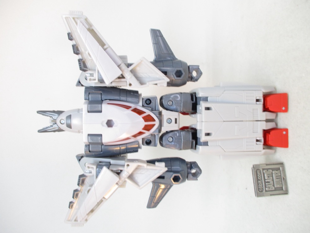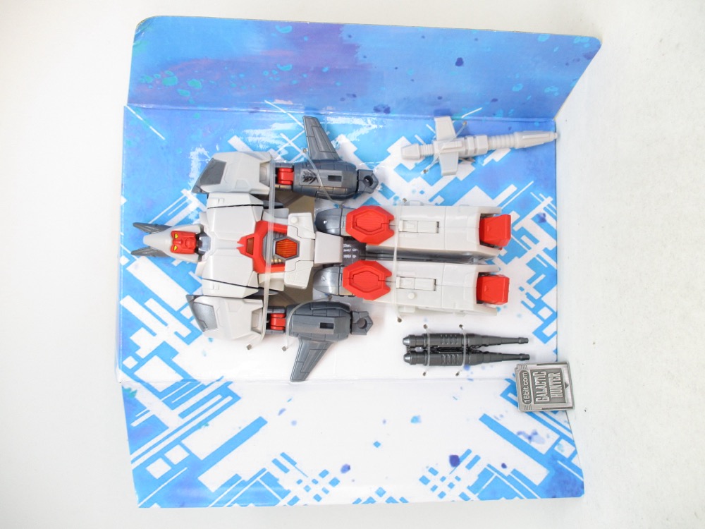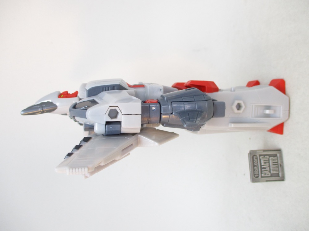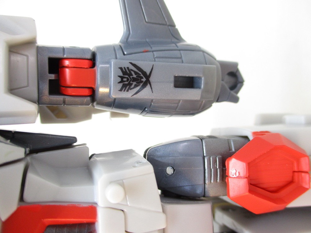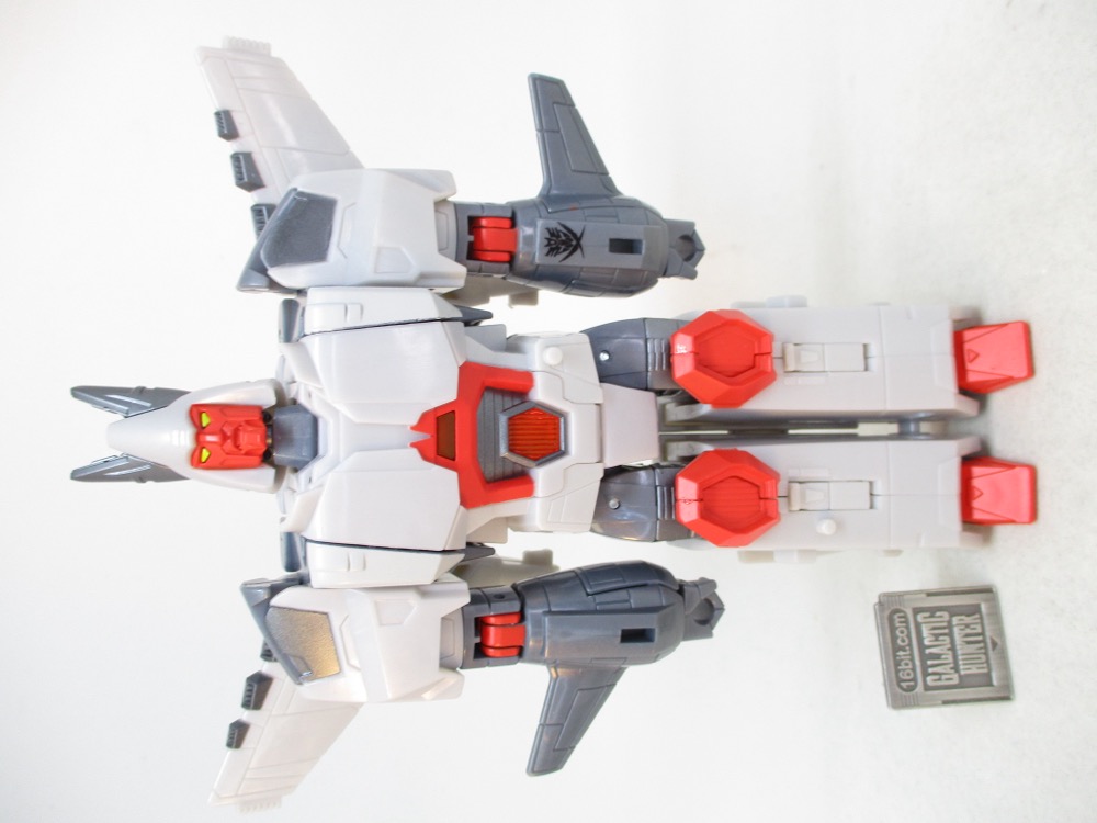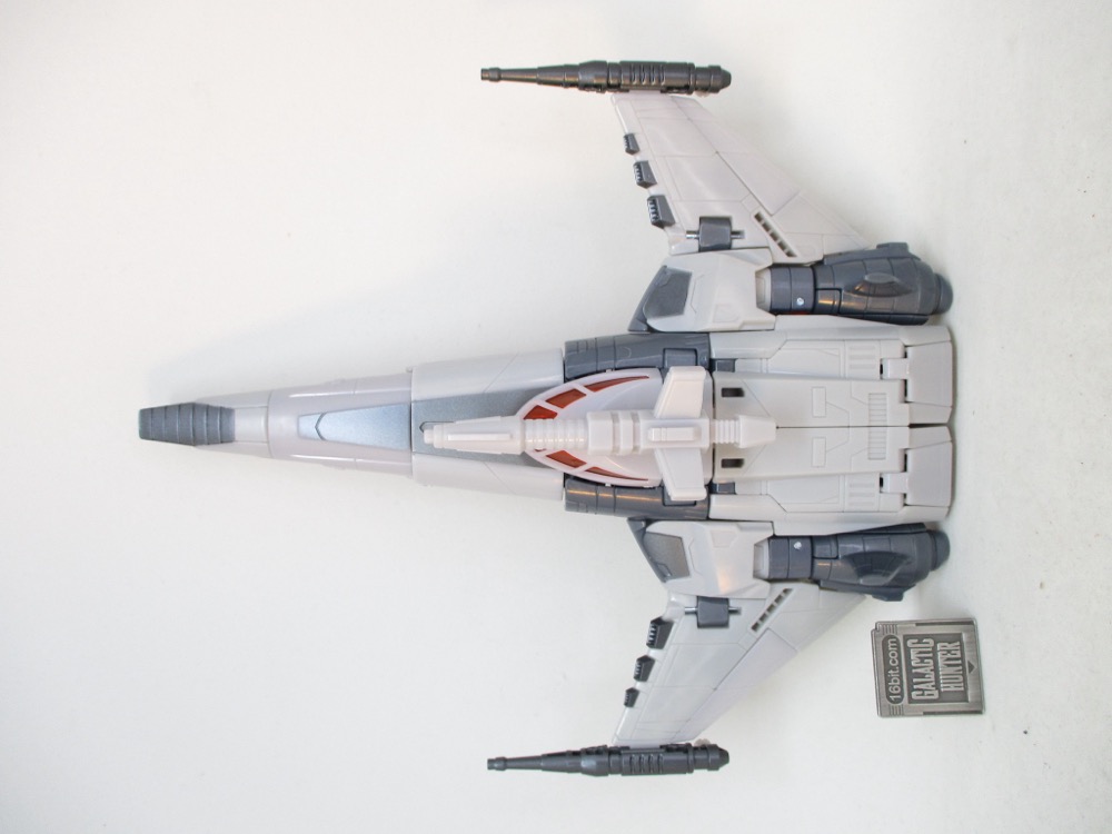The ship mode is more or less what you expect - it's basically a retooled Cyclonus with some big exceptions. The wings are retooled and have little tabs so you can plug in some extra cannons, and the nosecone is redesigned. It's good, with retractable landing gear and a pretty sturdy construction with a port on top for a blaster. It doesn't do a lot, but those few moving parts put it ahead of a lot of other alt modes. There are no visible markings in ship mode - a shame, I would have loved some sort of skull and crossbones or other markings on the tops of the wings - but it does a good job updating the old BotCon toy into something bigger, more impressive, and cheaper.
