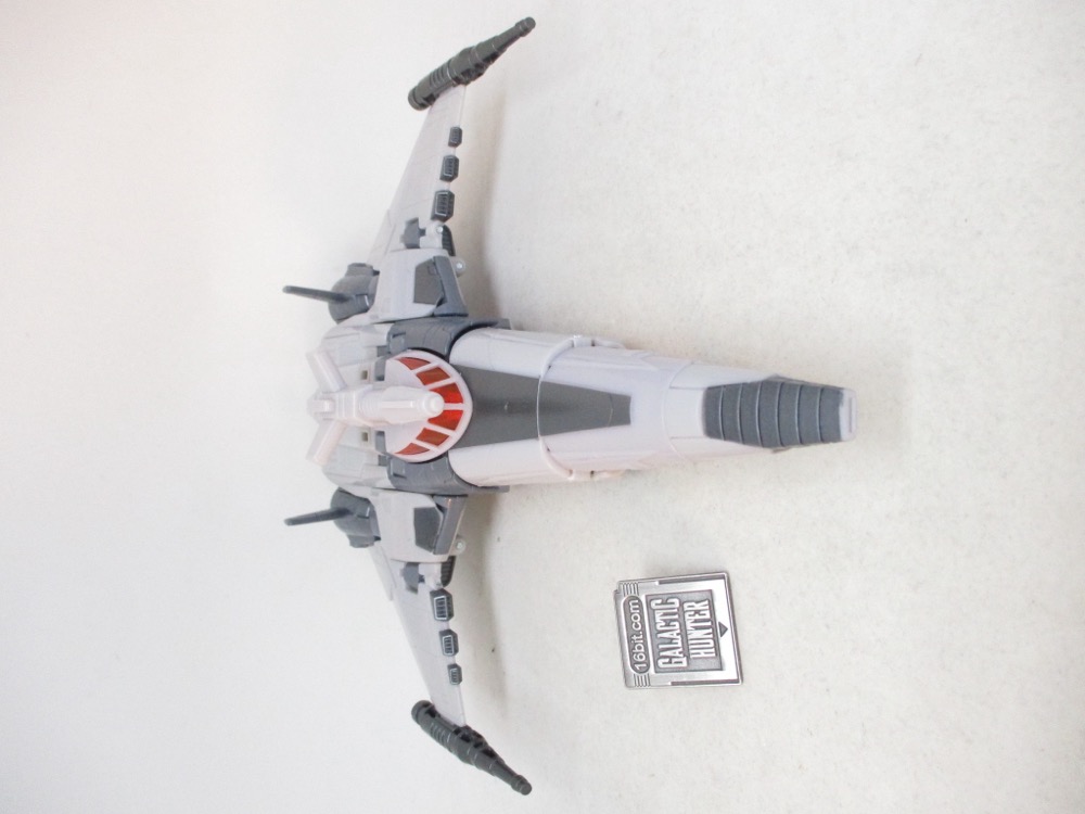 The deco is largely good. It would be nice if he had a little more color to him, but it's good enough and I like the slightly darker gray. The Star Seeker/Star Raider symbol only appears on the figure's left arm, and since it's black ink on a dark gray limb it doesn't stand out very much. A white symbol might stick out more, or perhaps placement on a wing would be less subtle. It looks cool, but it's easy to overlook.