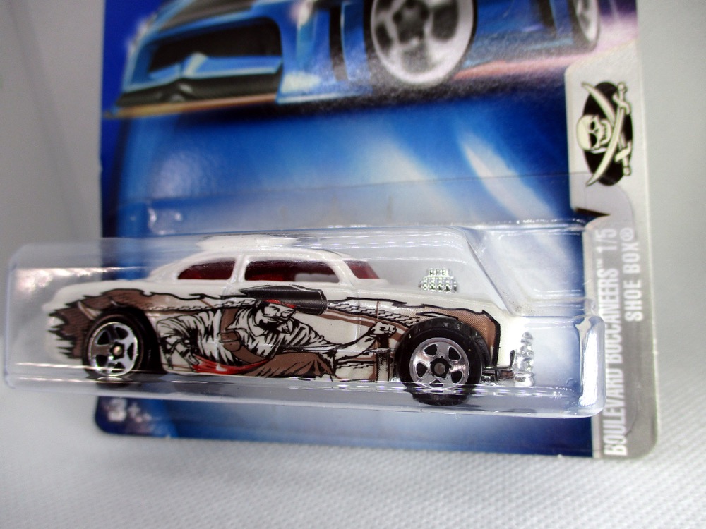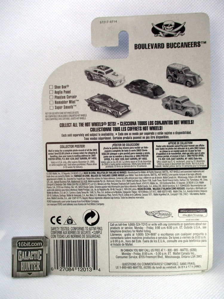 Mattel Hot Wheels Shoe Box Die-Cast Metal VehicleHaving been in the toy business for a while, one of my favorite things to spot is a trend. Much of the time one movie dominates the scene for a while, but what's fun is when companies who don't have a license make something anyway. In 2003, nobody had a Pirates of the Caribbean: Curse of the Black Pearl license, but Mattel had the foresight to put out its "Boulevard Buccanneers" Hot Wheels collection with a kid-friendly generic Pirates theme. And that's how I came to find this Bread Box at an antique mall over the summer. "Hey, that's neat" I said, and I dropped a couple of bucks on it.