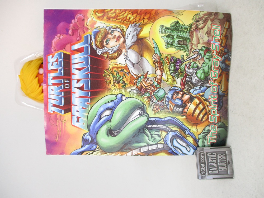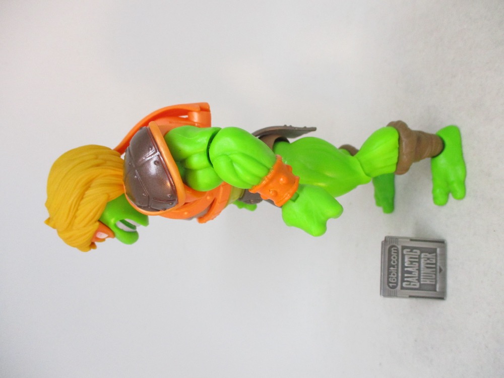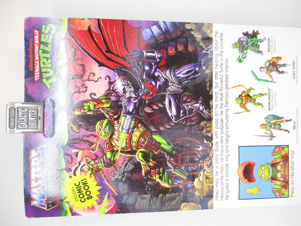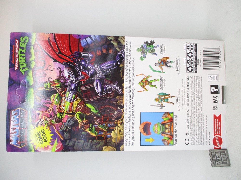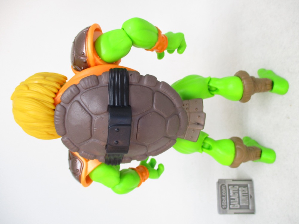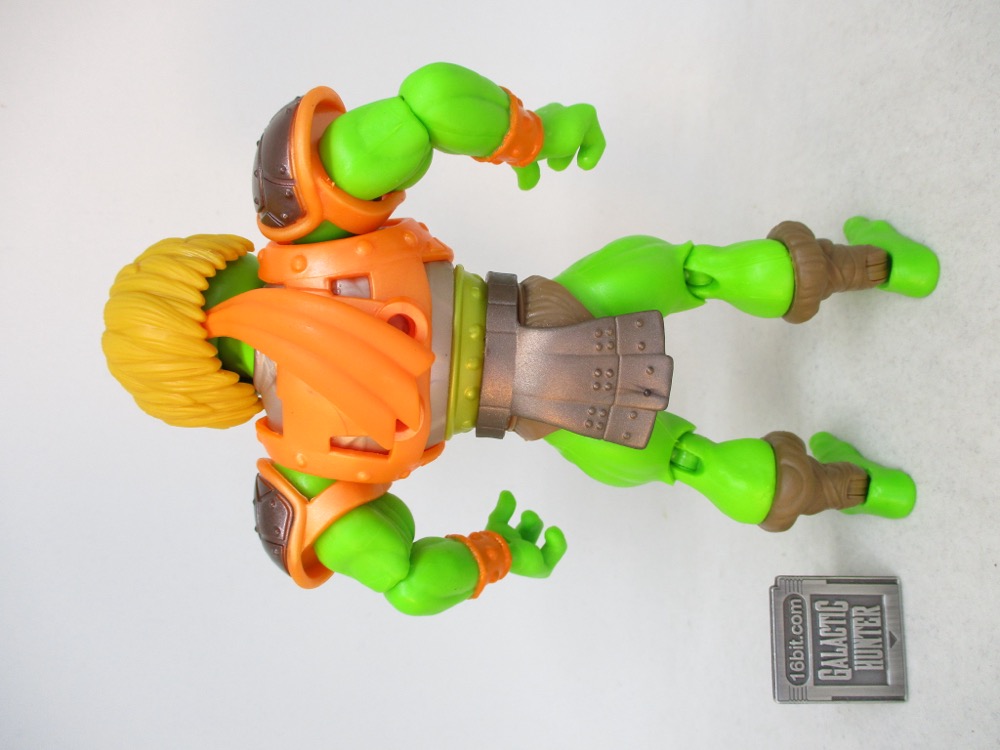 It reminds me a lot of the 1990s, when Playmates' own Teenage Mutant Ninja Turtles line was not only cheap, but seemingly an endless supply of Turtle variants that came out of meetings where someone said "there are no bad ideas," and truly meant it. Sewer Surfer Mikey, Storage Shell Mikey, and Movie Star figures were just normal, sensible things. But we also got The Invisible Man, Scotty, Frankenstein's Monster, and in more recent years Mikey has also been Peter Venkman. WWE wrestler Kofi Kingston will also been Mikey. There are robot versions of the turtle, Bandito Bashin' Mike, Cyber Samurai Mike, Midshipman Mike... it's just a rich vein of insanity and success here. He-Man Mike is just a very normal and sensible choice.