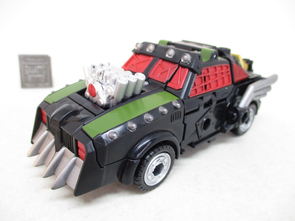 I really love the deco, the red windows are good and the silver painted spikes really helps sell the character. If you showed this to me and said that this car was always intended to be a Lockdown toy, it's hard to argue with it. They really captured the personality of the car, down to the lack of faction markings. Sometimes a repaint makes good sense, and this one makes very good sense.