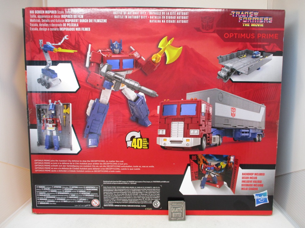Item No.: No. 86 Manufacturer:Hasbro Includes:Roller, repair drone, blast effects, truck jets, container, ion blaster, Energon axe, Matrix of Leadership, diorama Action Feature:Transforms from truck to arguably the most famous robot toy ever who isn't Voltron Retail:$89.99 Availability: September 2024 Other: Big, but not the biggest, of the Classics/Generations/Universe/Legacy/Studio Series era
