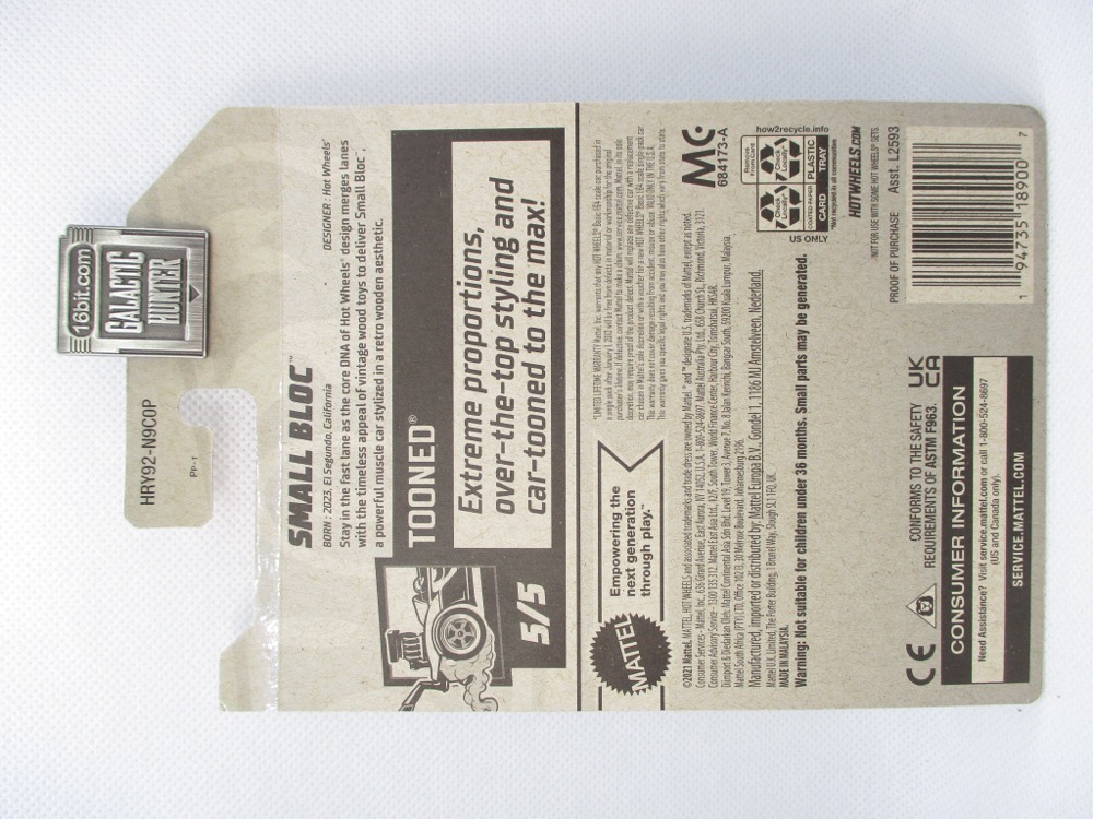Mattel Hot Wheels Small Block Die-Cast Metal VehicleNot to be (easily) confused with the similarly named Custom Small Block [FOTD #2,400], the Small Bloc is different. The Block (with a K) is a great toy that you should buy for your kids that's compatible with LEGO and similar brick toys. The Bloc (no C) is a new one, with the gimmick being that it is textured like wood - but is plastic. The base is metal (you can see the engine poking through), but the chassis is faux naturally grown material. I would love to see a version of this made out of actual wood or a PLA wood equivalent, but for now, we'll have to settle for this clever way to get me to part with $1.25 and Mattel didn't even have to pay a licensing fee to do it.
