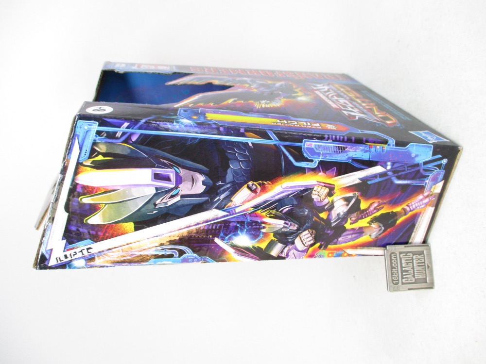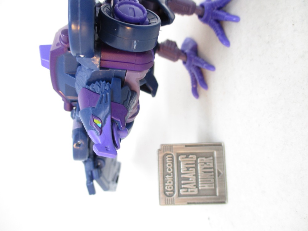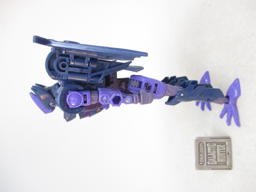 Deco is good, but might be a little too subtle. The colors Hasbro selected are all good ones that mimic the animation models, but I do miss the splashes of blue and gold, and the Star Raider symbol is black on dark purple. I completely missed it when I was shooting the pictures for robot mode, it blends in so well - other figures in this line share this problem. With pirates, having a faction symbol a bit more in your face would seem to be good to sell the cohesive theme, but I suspect the theme was secondary to delivering a figure that collectors might squeeze in alongside Thermidor and Scorponok. It was a great era for new characters, and the collector market prices seem to agree with that opinion.