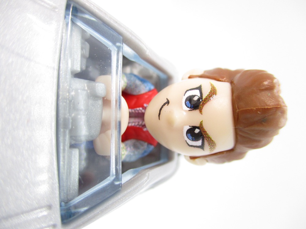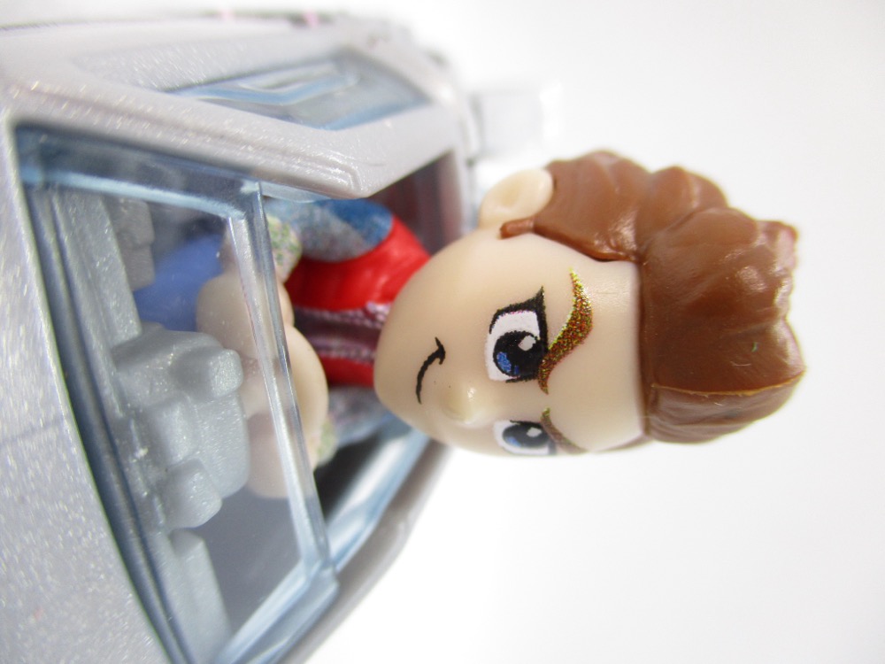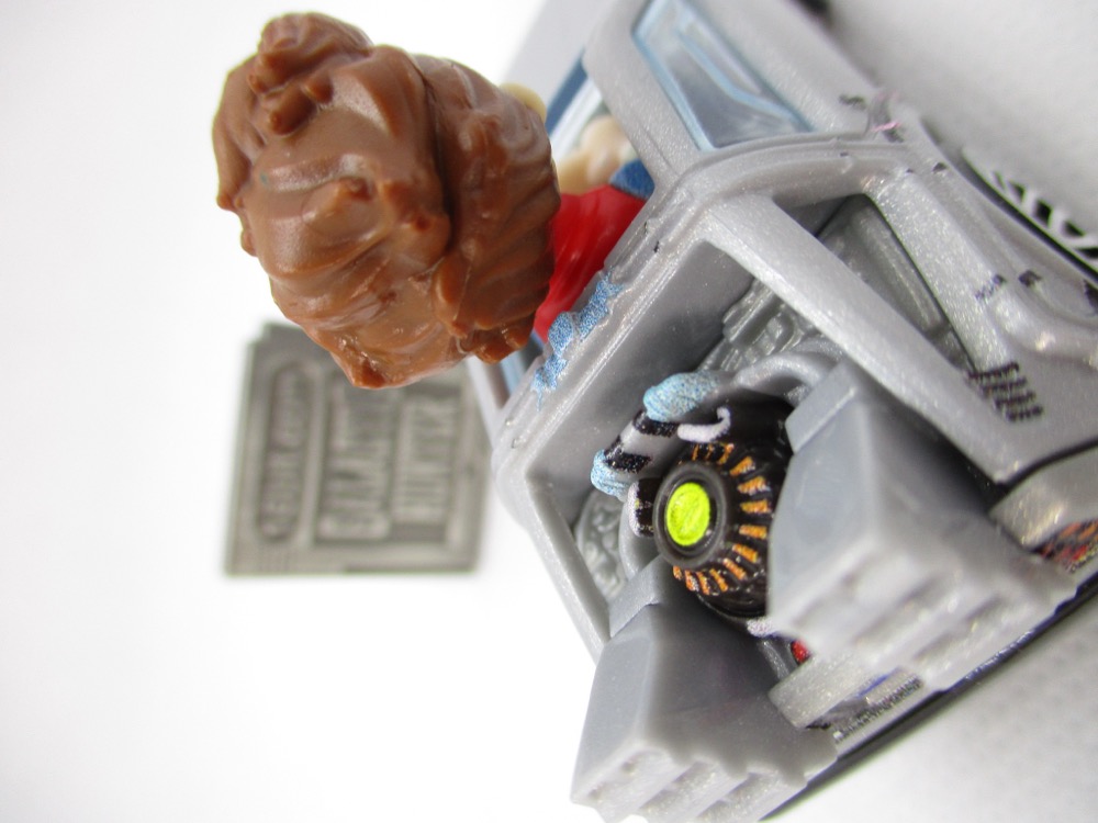 The cartoony Marty McFly doesn't look exactly like Michael J. Fox, but it's close enough for you to go "oh yeah, it's Alex Keaton." His hair is lively, with a wry smirk and a determined look on his face that says "I am actually in Mario Kart right now." The face paint is printed neatly and cleanly, with solid eyebrows and a decent amount of detail inside the car. The hands are the same color as the steering wheel, but they took the time to paint his vest orange with blue and white painted textures on his shirt. This sort of thing is increasingly normal in this and other figure lines, but it's still impressive to me. Toys are usually painted one or two colors, so a fancy pattern is not necessarily expected. He's unremovable, there's no articulation, but he looks cool and is certainly part of why this car isn't $1.25.