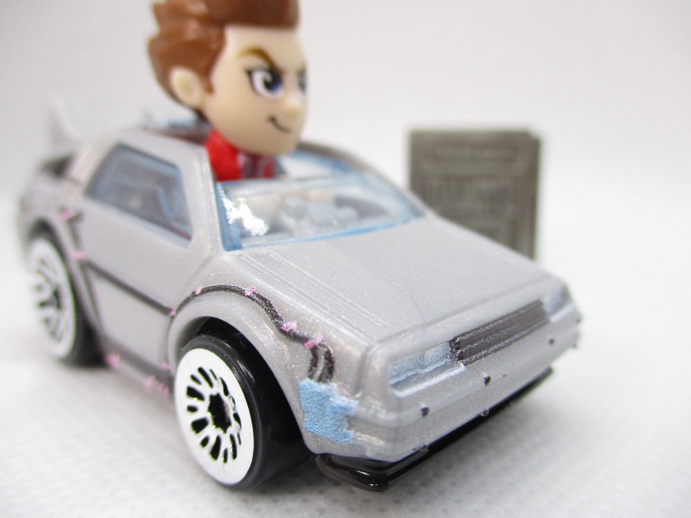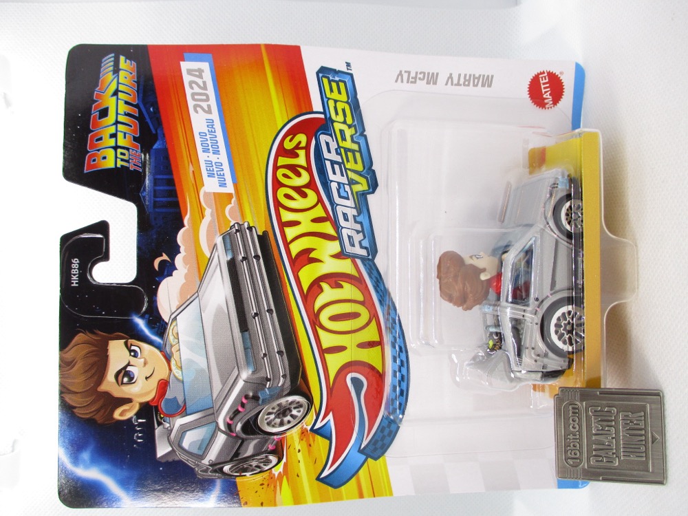 Mattel Hot Wheels Racer Verse Marty McFly Die-Cast Metal VehicleA sensible addition to Hot Wheels Racer Verse, and admittedly a little silly, is Marty McFly in Doc Brown's DeLorean Time Machine. Mattel has made many of these toys over the years - and so has Playmobil, LEGO, Ertl, Diamond Select, and yes, even McDonald's - but I think this is the first one to have its driver pop out of the roof.