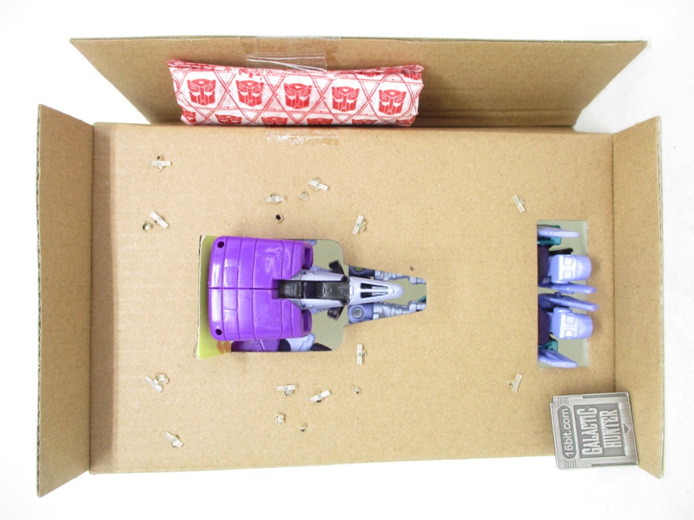 Her head is new, and it's a little wide. The concept drawing on Instagram looks a tiny bit better, if only because her face proportions aren't quite as stretched. It's still pretty good, with a glossy painted front half of the helmet and a molded-in-black back of the helmet. The final head is very much the original art, but everything is a different size, or things seem translated strangely. The toy seems to have a tiny chin beard, but the drawing looks like a chinstrap. The jewel in the toy head is narrow and red, but the wider design in the artwork actually looks a little more subtle.