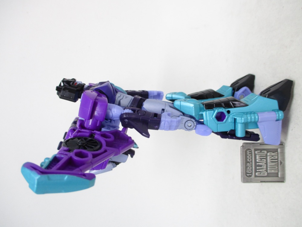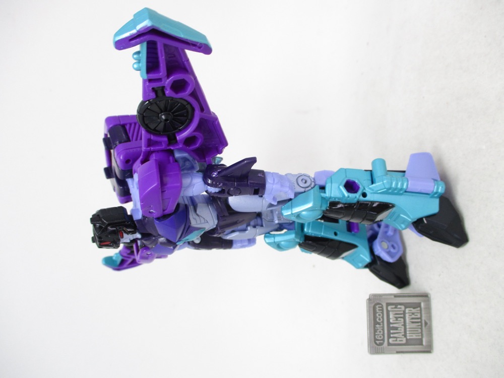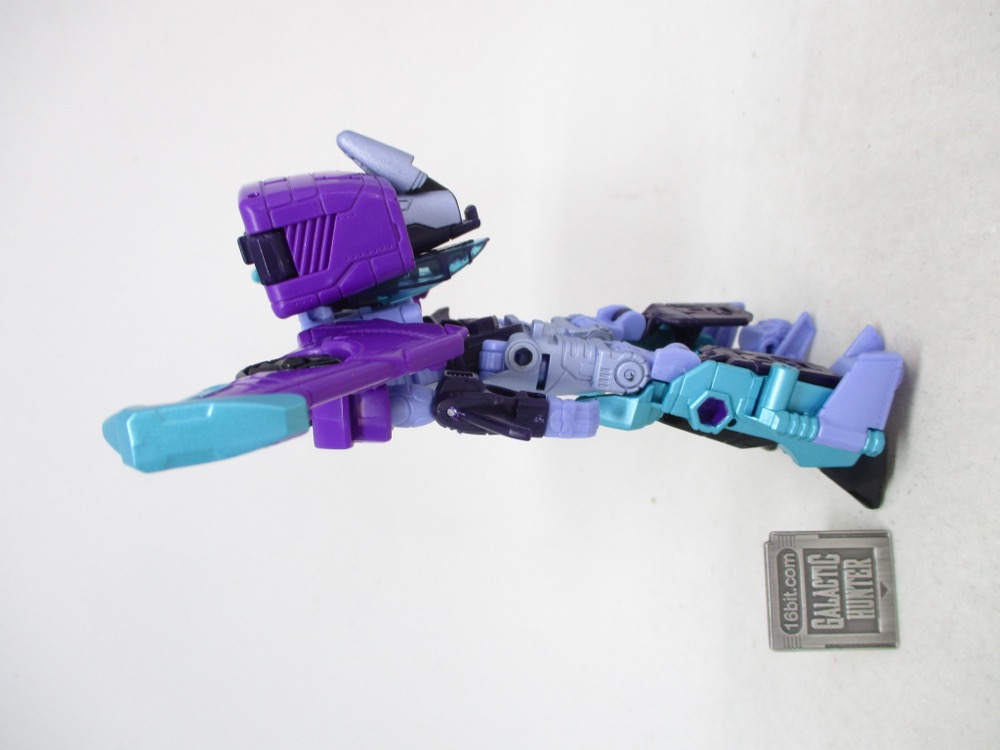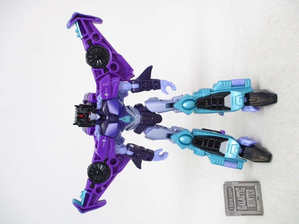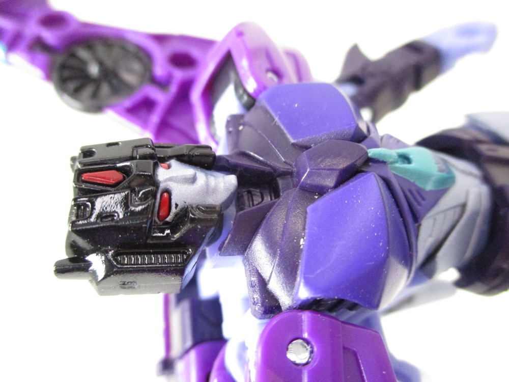 If anything, this toy is really good at being Hasbro's take on Takara-Tomy's previous Windblade-derived Slipstream. You can see the wheels turning in the designers' heads, and in some cases taking clear inspiration from Japan's releae. The metallic teal paint on the wings and legs, for example, seems to be a pretty good example of making use of a good idea.