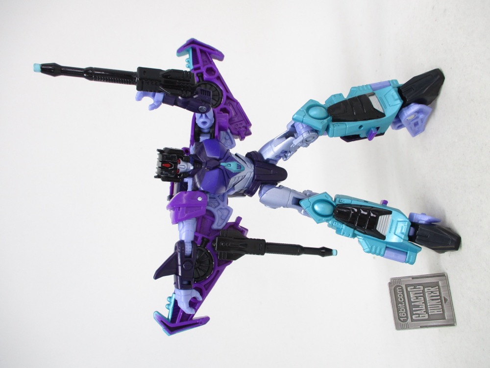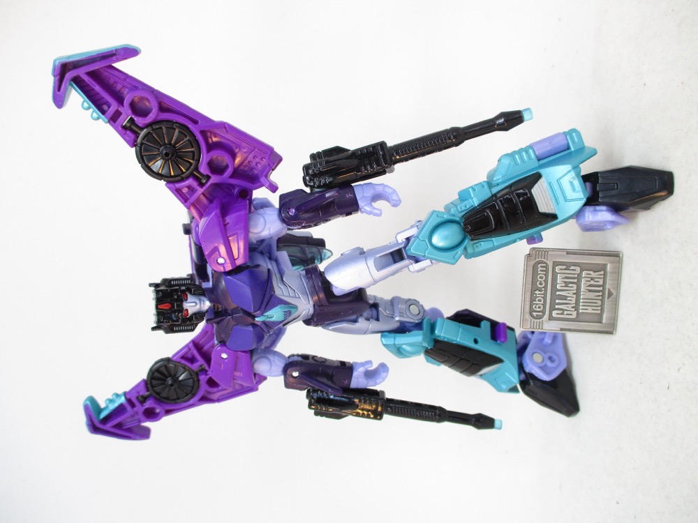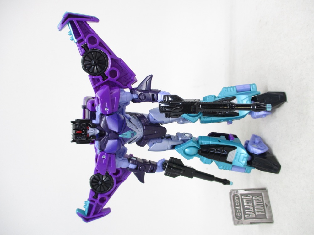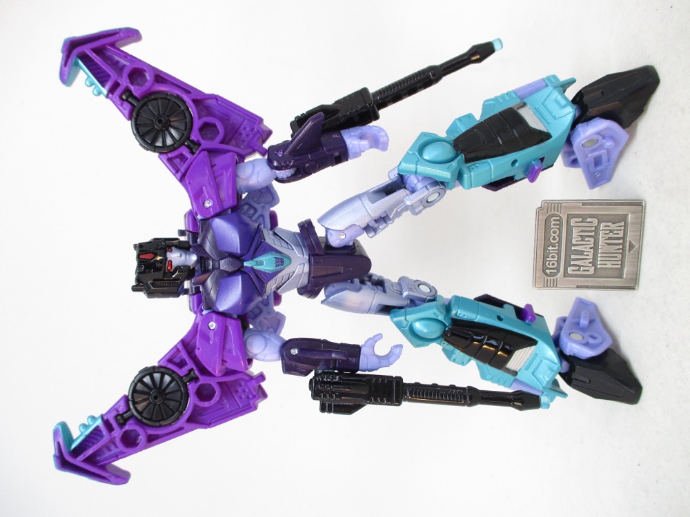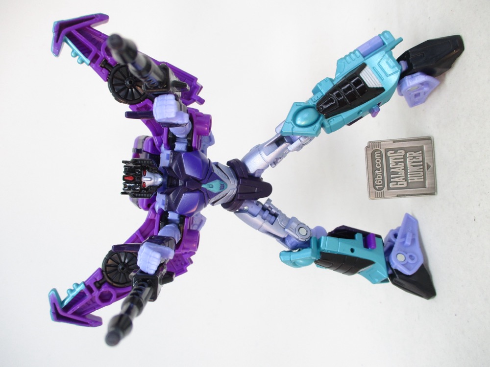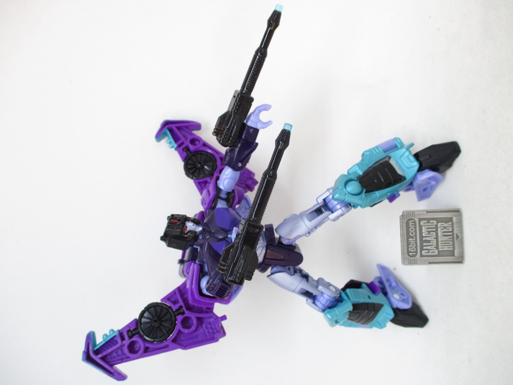 If anything, this toy is really good at being Hasbro's take on Takara-Tomy's previous Windblade-derived Slipstream. You can see the wheels turning in the designers' heads, and in some cases taking clear inspiration from Japan's releae. The metallic teal paint on the wings and legs, for example, seems to be a pretty good example of making use of a good idea.