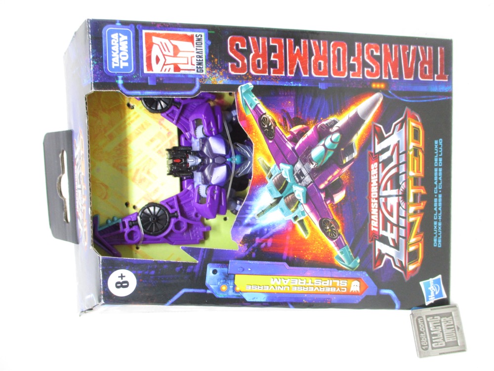 There are a lot of toys - a lot made for collectors every year, and some fall under a familiar banner. "It's good, but it's not what I expected." Cyberverse Universe Slipstream is a good figure but not what fans expected - which was a taller, Voyager-class mold which Hasbro would hopefully redecorate several times. Instead this figure is a new head on the Windblade [FOTD #2,710] body, which is what Takara-Tomy did with their Legends figure a few years ago. With other changes, of course. Each one is something of a compromise - Takara-Tomy's was the Animated Starscream clone made out of a G1 Generations body - so not quite a match for the source material. Similarly, this is a Windblade repaint and not quite as angular or chunky as the cartoon Cyberverse animation model. As its own thing, though, this is a good toy - so I'm going to recommend that you take her on her own terms.