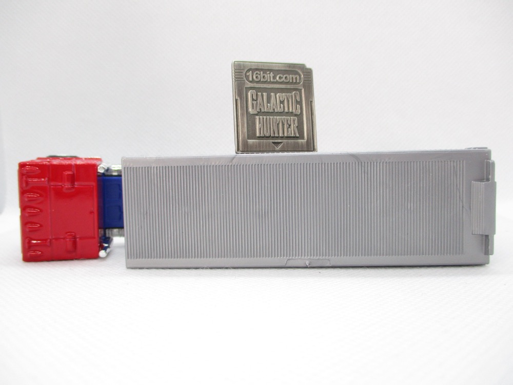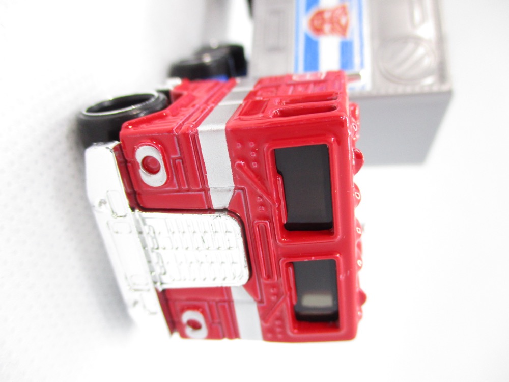 As the name implies, you can put this guy on track. That's nothing new, Hasbro made a line of die-cast vehicles over 10 years ago and 20 years ago we got a Kay-Bee exclusive Spy Changers Optimus Prime that's pretty dang cool - but it was G2, and the kids demand G1, because the graying middle-aged cranks demand G1. That's the circle of life.
