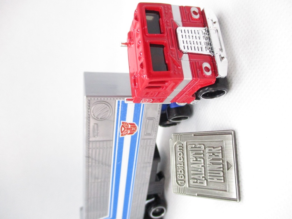 At this point I think I can say that there will probably never be an Optimus Prime toy to end all Optimus Prime toys - I assumed Missing Link Optimus Prime [FOTD #2,700] would be it, but while cool it isn't fun. For pure fun, Legacy United G1 Optimus Prime [FOTD #2,786] gets the job done - but it can't roll well. I assume I need to resign myself to probably having a few of these, and there are two more coming next year that looks pretty great - but one is a giant, and the other is small. We'll see how that goes - but at $6, a little metal truck for your desk ain't nothing. It's a great impulse purchase on your lunch break to keep on your desk, and I bet kids might have fun with it because it's a very lovely little toy truck. I hope to see more of these - we know Ultra Magnus is coming, after all. I can't wait for Hot Rod.