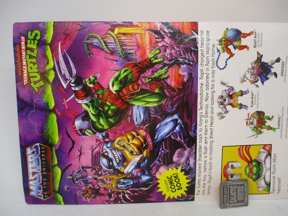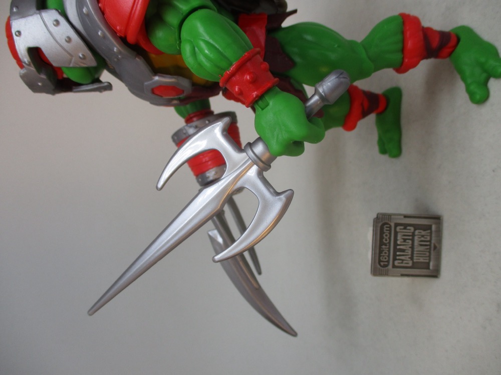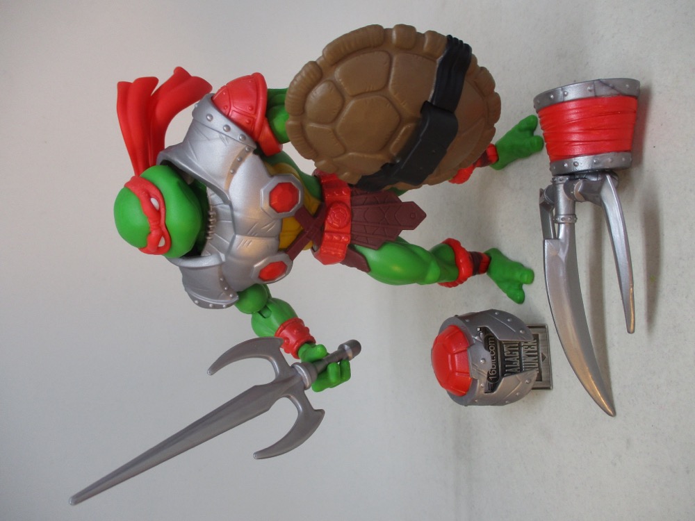 Raph follows the pattern of the other brothers in that they clearly raided the closets of Eternian heroes. In Raphael's case, he stole Ram-Man's gear while he was busy being a mutated ram man. With horns, and everything.