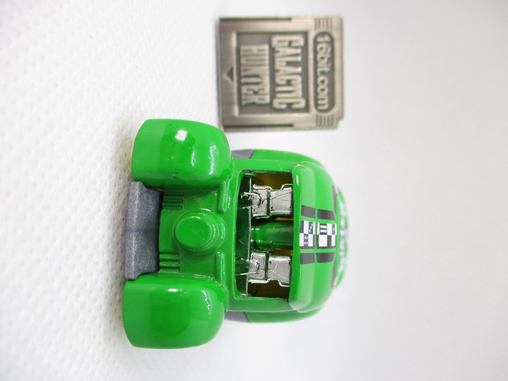 It's not really built for speed, which is typical of the Experimotors strain of cars. Some are working bottle openers, or money clip, or even a wrench. We got some key chains too - no wheels, but what a clever idea! I liked this one because of the friendly round shape and the candylike green paint.