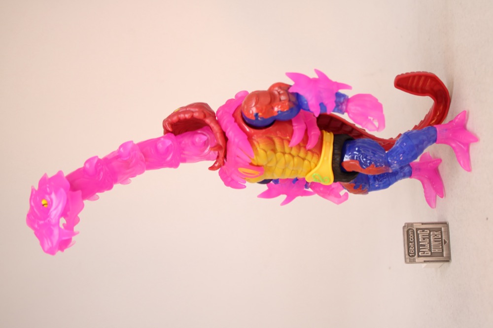 The figure is mostly Rattlor's parts from his previous release, with the mutated hands we got from the likes of Mer-Man, Moss Man, and the Demogorgon last year. It's good, because it makes the figure look fresher. It's bad, because the articulation on this kind of foot doesn't seem quite as good for keeping the figure upright. You might want to get a stand for this guy.