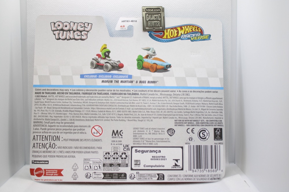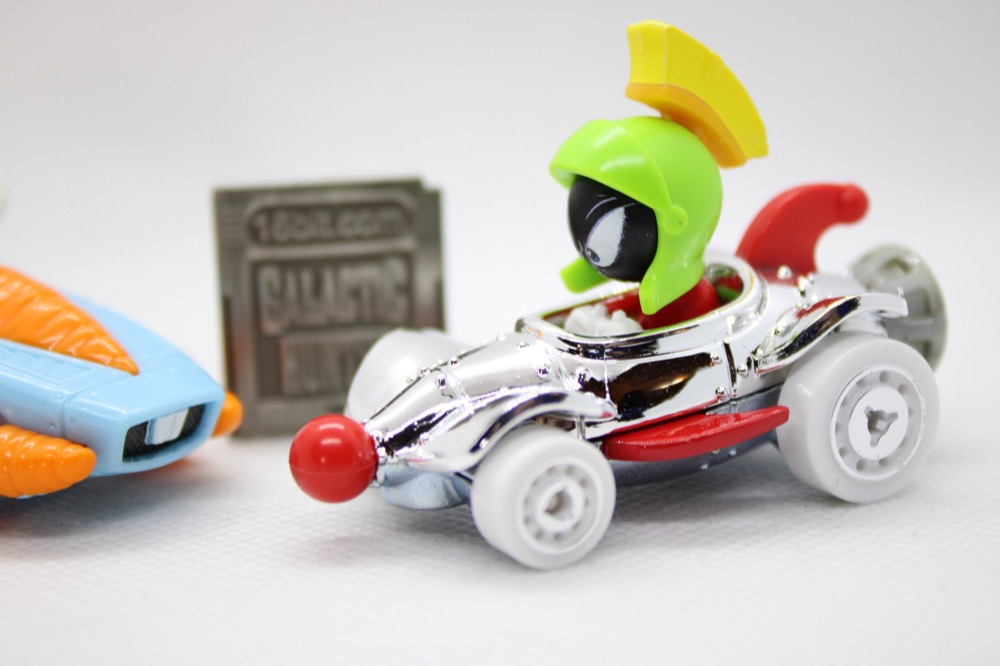 Mattel Hot Wheels Racer Verse Marvin the Martian & Bugs Bunny Die-Cast Metal VehicleI got a single-carded Bugs Bunny in a case from work, but I didn't open it. Why? Because I found out that a Hot Wheels Racer Verse Marvin the Martian & Bugs Bunny was coming, and who doesn't love a cartoon character whose whole shtick was blowing up you and everything and everyone you've ever known? I found a lot of neat stuff last month around Christmas, because the stores were oddly not all that busy to the point of being almost eerie. Busy sure, but not the chaos that I remember seeing in the past. I was happy to find the set, and opened it that night.