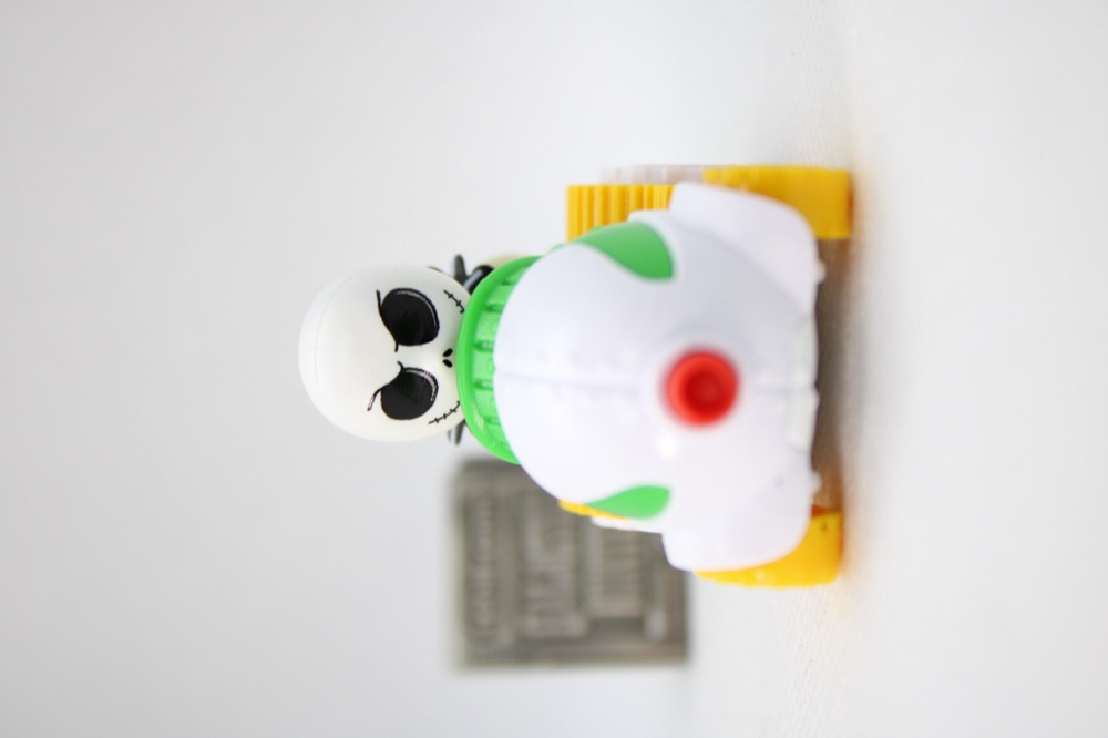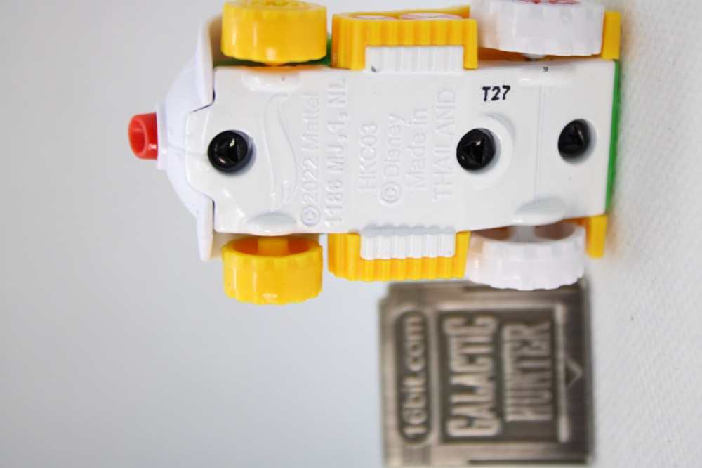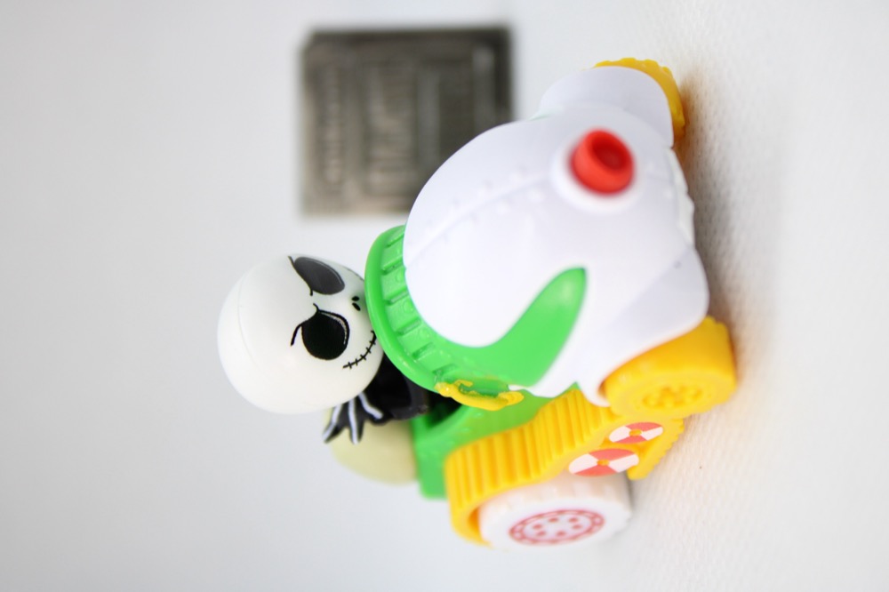 You get Jack in a car like his snowmobile from The Nightmare Before Christmas, which is a sensible choice. Mattel is probably in a weird position where it has to make a car out of another vehicle to make the brand work, and some are obvious choices while others are a little tougher to get right. Trading out snow tire tracks for wheels on this one got the job done, while keeping the white, green, yellow, and red coloring. (There are vestiges of the treads, though.)