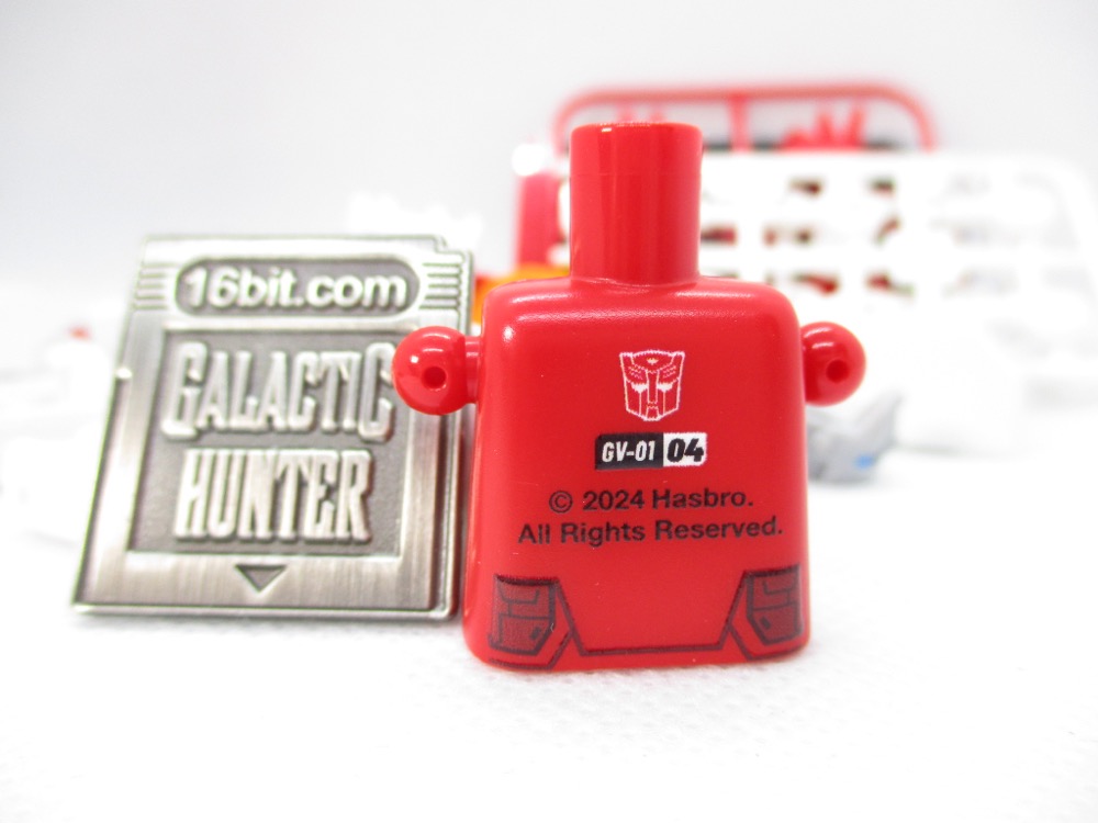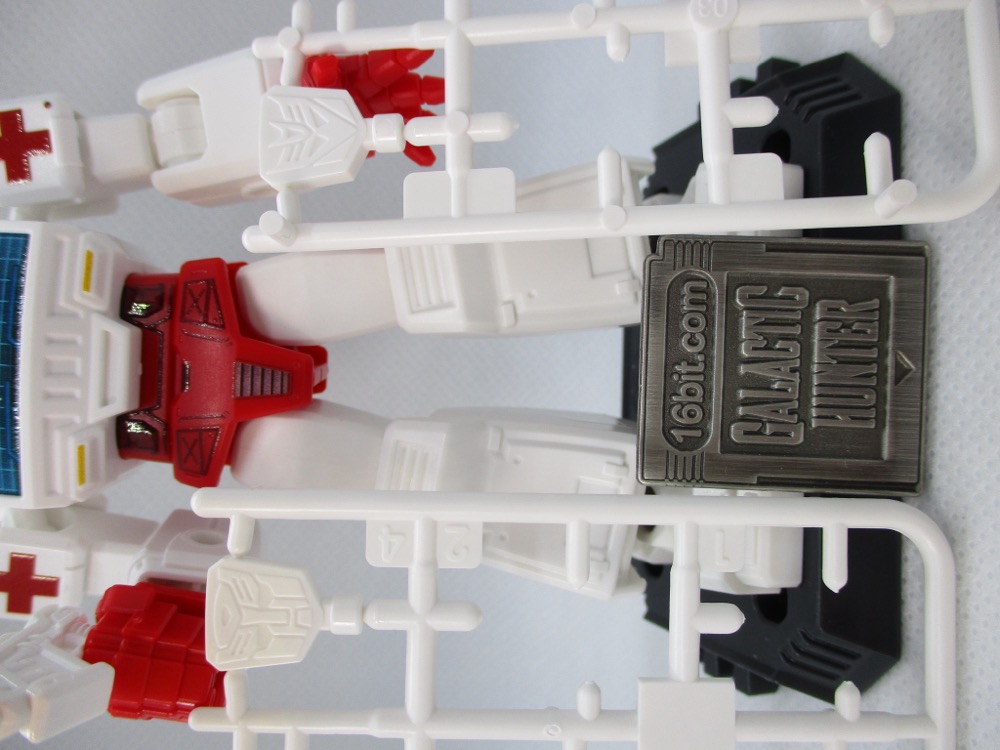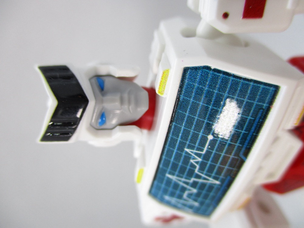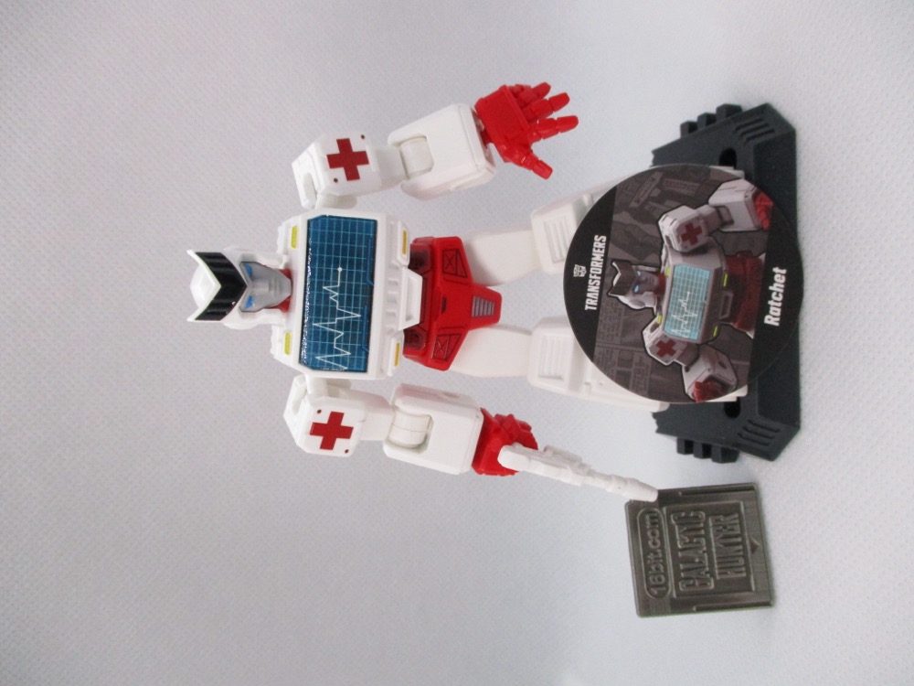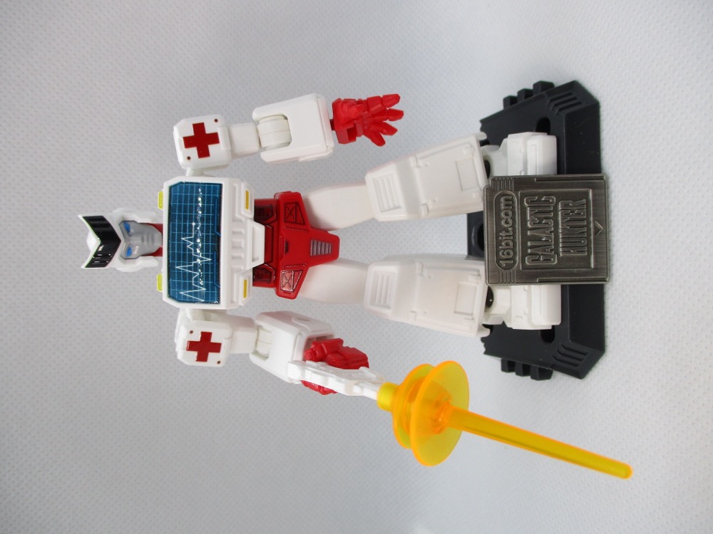 I bought two random blind box Blokees last year to see what they were like, and one of them was Ratchet. The character takes inspiration mostly from the cartoon deco, with some neat embellishments. The white helmet with black crest is pure Sunbow, as are the red hands and red cross shoulders - a feature frequently missing due to conflicts with the Red Cross organization. Why is it OK here? Honestly, I don't know.