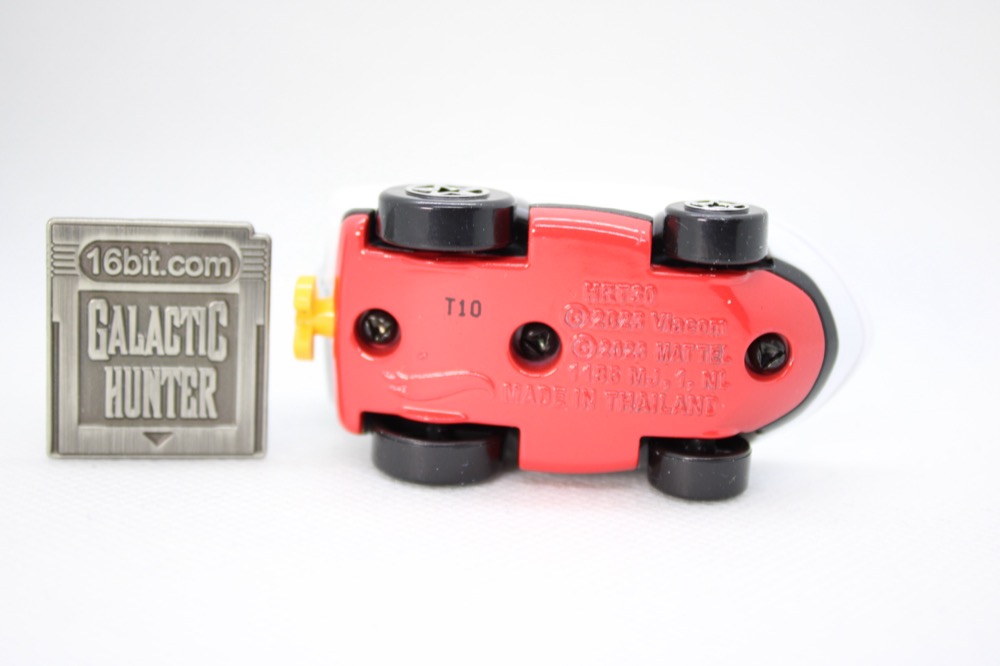 The boat of car is an excellent design, but light on deco. It looks a lot like the Boatmobile from the s how, which sometimes has numbers and sometimes doesn't - they opted for the simplier deco. As such, it mostly looks white with a black and red base. The motor in the back has a non-spinning orange propeller, a chrome chassis, and added gray hot rod pipes. Since the boat on the show has wheels, it won't surprise you that they're here too - but beefed up, with chrome star rims. It's on-theme for the show, and you get a blue windshield too. It's a satisfying design, but light on color - a red flag on the hood would have been great. It just needs a little color.