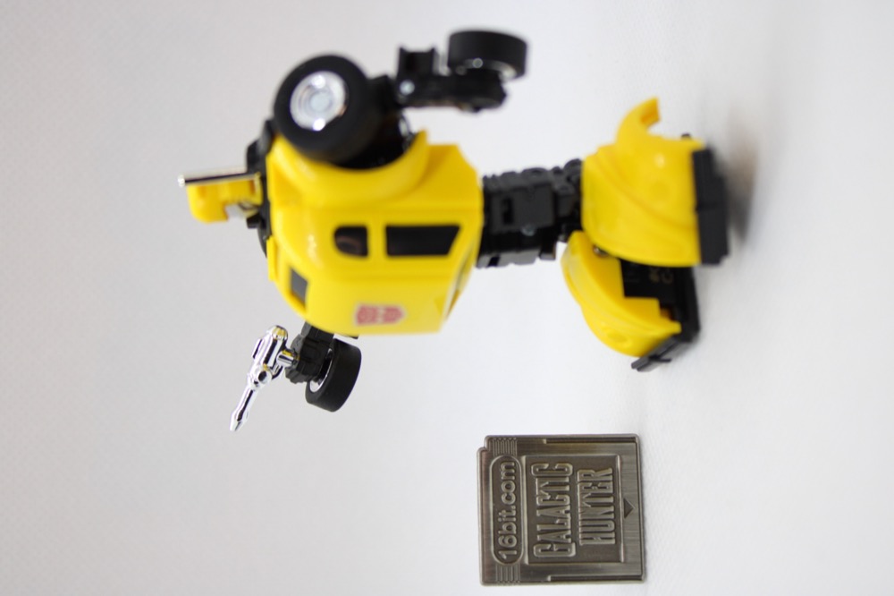 I am amazed someone went through the trouble to add in tiny thigh swivels, swivel shoulders, bending elbows, rocker ankles, and a tiny bit of movement for the legs to swing forward at the thigh. It's a real tiny masterpiece, and that's why you're paying so much for it. If you just need a Bumblebee to stand around in your collection, though, it's a lot more complicated than a toy of this size needed to be in order to be fun. But if you're doing fancy photography or dioramas, this is the one to get.