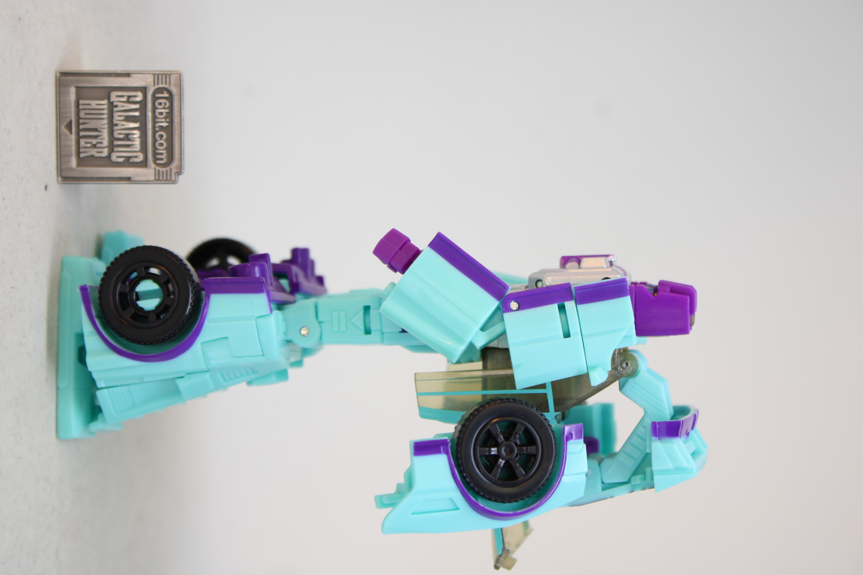 Hasbro's redesign added most of the articulation you've come to expect. The wrists swivel in and out of the forearms for transformation, so they don't rotate. You do, however, get a jointed waist and rocker ankles. And knees, and hips, and more articulation than anyone in 1994 had reason to expect when they did(n't) get the original toy redeco. I think it does a good job of getting the idea of a G2 Breakdown across for a fair price, but given some of the more saturated colors we've seen, or the visor heads, I wouldn't be surprised to see fans ask for a redo again. It's still plenty good, though.