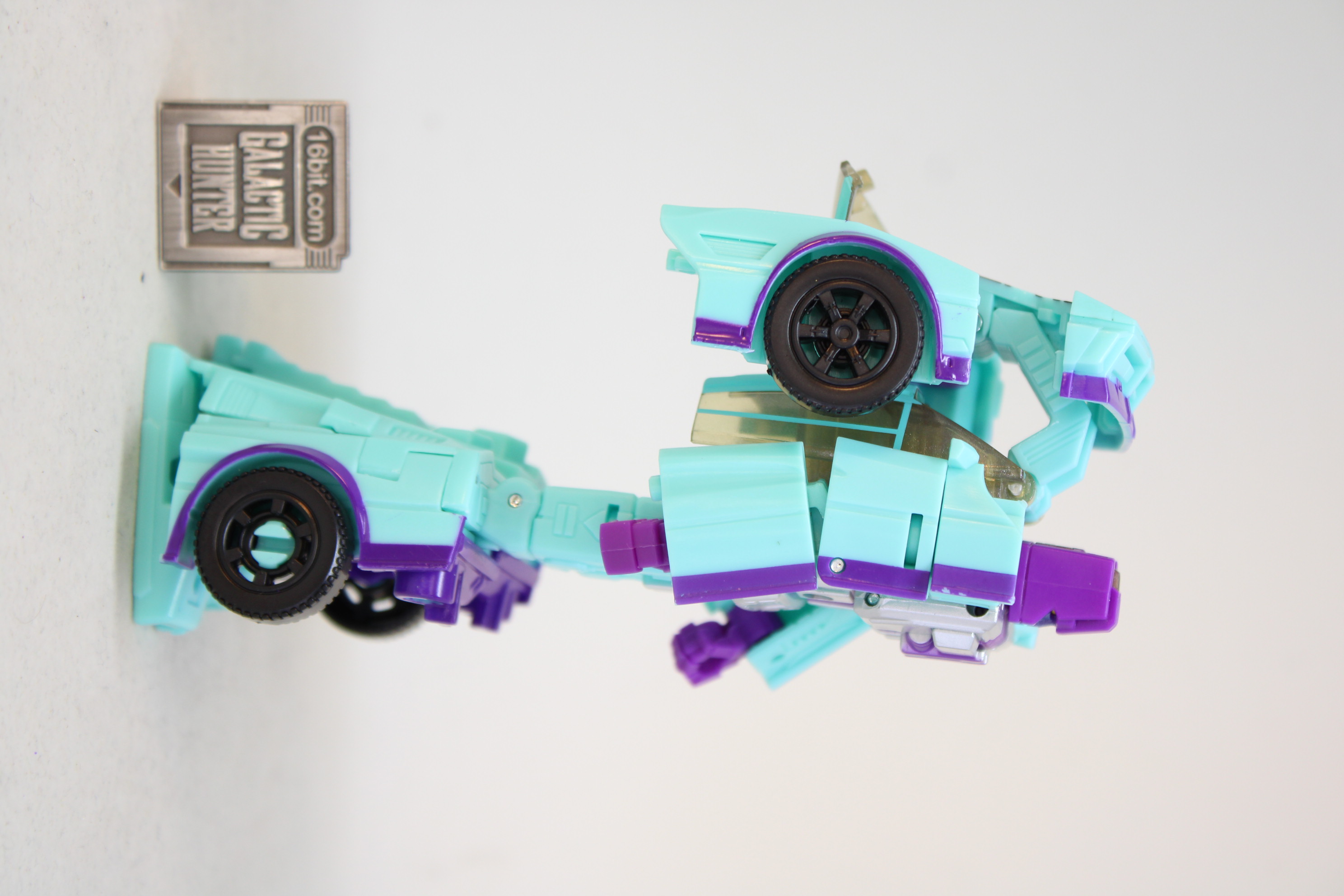 The removable spoiler does me no favors, I'd just as soon have it stowed on the back of the toy because it's kind of a silly accessory once placed in his hands. It does look good on the car mode, though, and I'd say Hasbro did a good job with this figure's gear. (Especially if he's destined to spend his life as a limb for a bigger robot!)