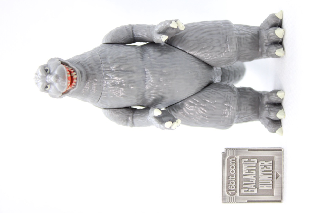 The figure is lumpy and just right, with swivel arms, neck, tail, and hips. He has big three-toed feet, so he stands well and is incredibly stable. Those hip joints aren't wholly necessary - he's never going in a vehicle - but you can use a stand and get him to stand on one leg. His arms can pose just enough to make a little monster fight, and I found I kept picking him up to scoot him around or to move his limbs a bit. For a toy with no action features, he's very magnetic and the kind of thing I wish I had as a kid. (What I had was a rubbery bootleg backpack clip thing from a skee-ball prize. Legit Godzilla toys were scarce in the 1980s and very early 1990s.)
