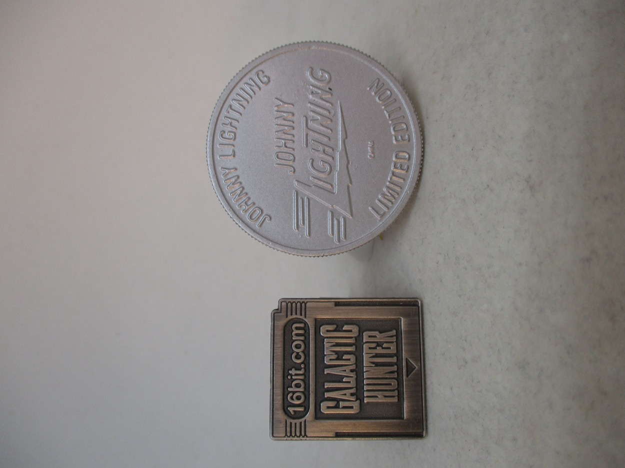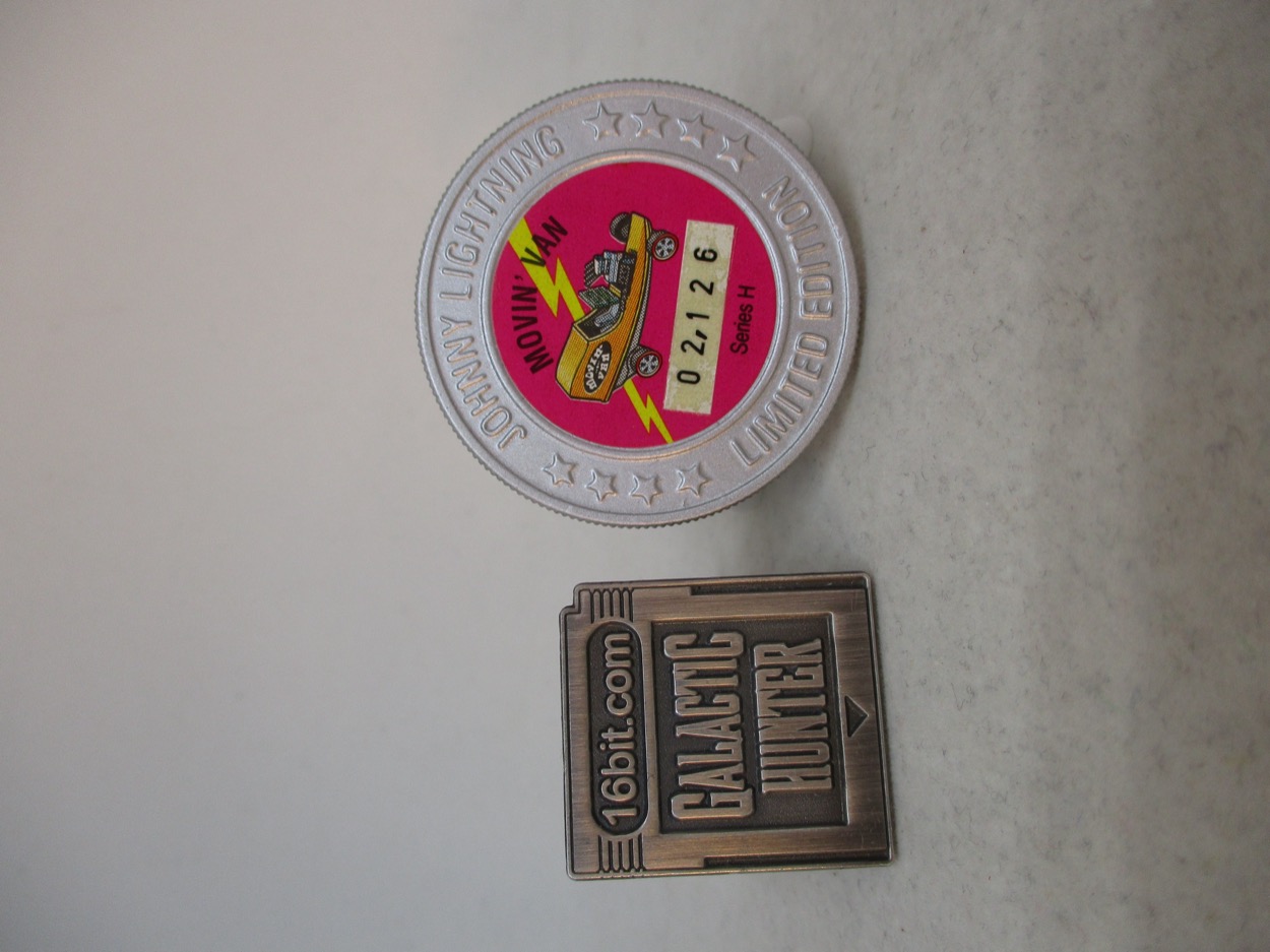 The only accessory is a coin that's plastic with sticker on it. It's big, but not huge - about 1 1/2-inches across.