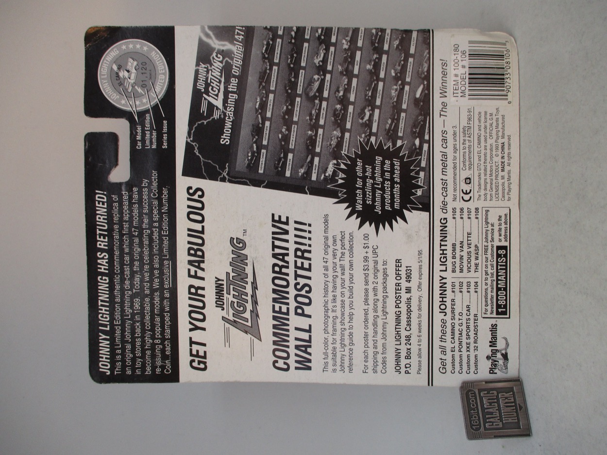 Item No.: Item: 100-180 Model: 106 Manufacturer:Playing Mantis Includes:Silver Plastic Limited Edition Coin, #2,126 Action Feature:Rolls Retail:$2.99 Availability: ca. 1993 Other: Available in many other colors