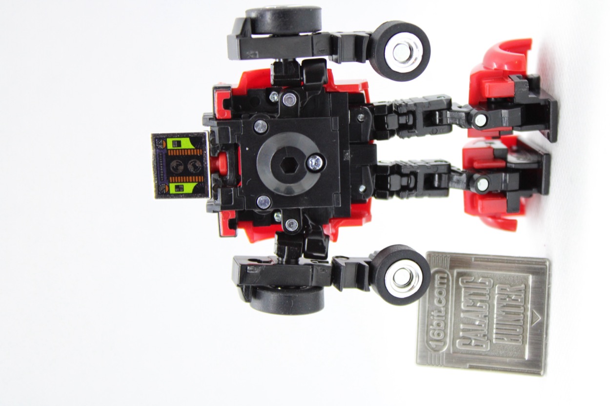 Transformation is easy, like the original toy. Fold in the head, fold down the feet, shove the legs in the body cavity, and cram in the arms. I didn't need instructions, and if you do, perhaps you would like a simpler hobby like watching paint dry or staring into the Sun.