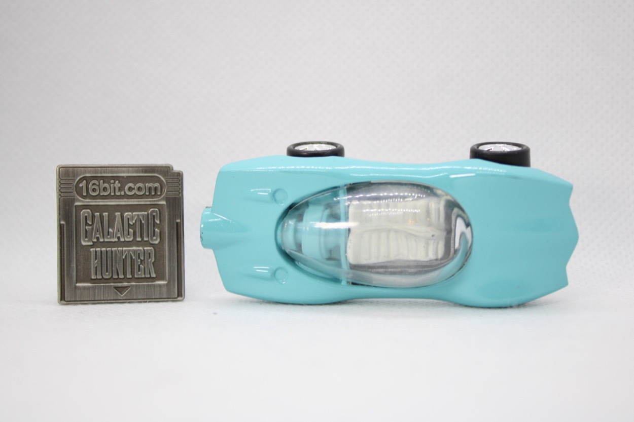 The original versions of this car come in multiple colors, some even have that turbine engine painted silver. The reissues do not. This particular one has a white interior with aqua blue everywhere else on the chassis, with an unpainted metal base. The clear window is, of course, plastic, as are the wheels - but everything else is metal. This makes it heavier than a typical Hot Wheels or Matchbox car of the 1990s (or today), which certainly impresses when compared to the $1.25 cars at the grocery stores.